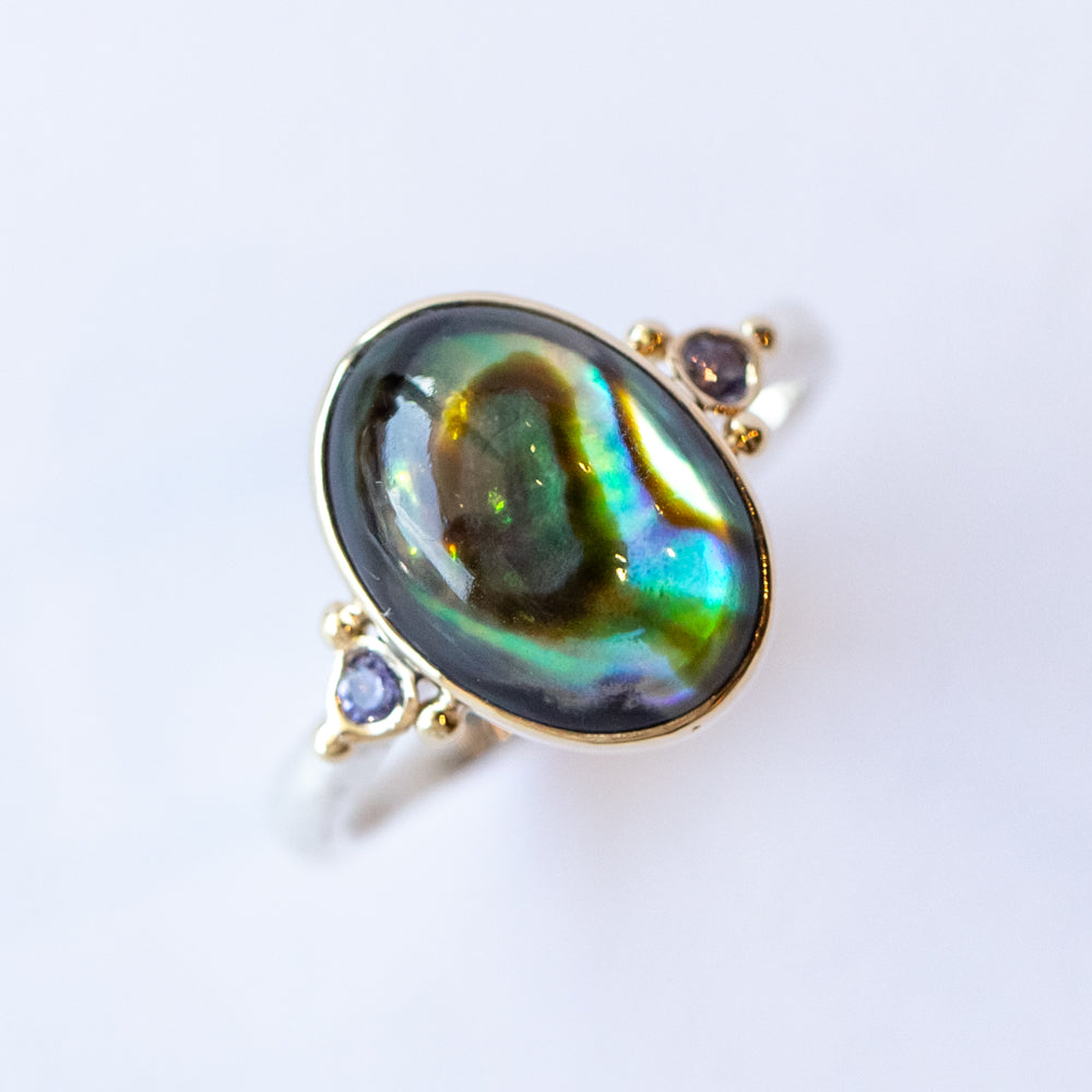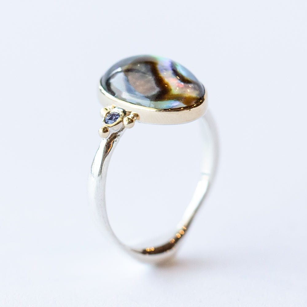 Emily Amey | Oval Abalone and Tanzanite Ring