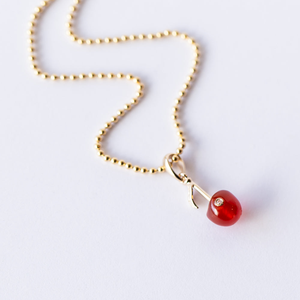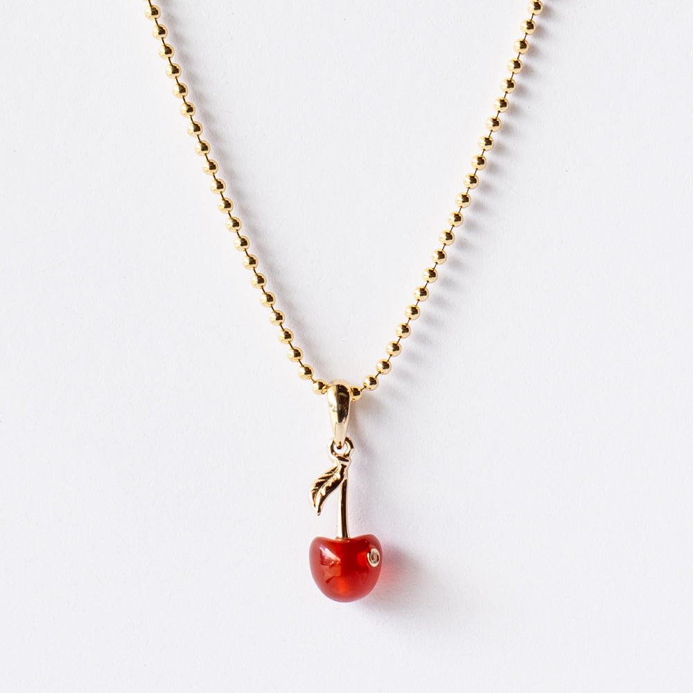 A little sweet, a little sparkly—this Cherry Baby Charm by Ariel Gordon is peak summer jewelry vibes. Hand-carved from solid agate and finished with a tiny bezel-set diamond, it’s giving retro fruit stand meets fine jewelry glow-up. Whether you're into building a custom charm bracelet, layering up a playful cherry necklace, or just adding something cheeky to your gold chain lineup, this one’s ripe for the picking.