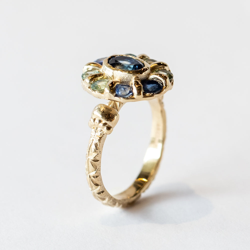 Ciara Bowles | Blue and Green Sapphire Mega Halo Ring