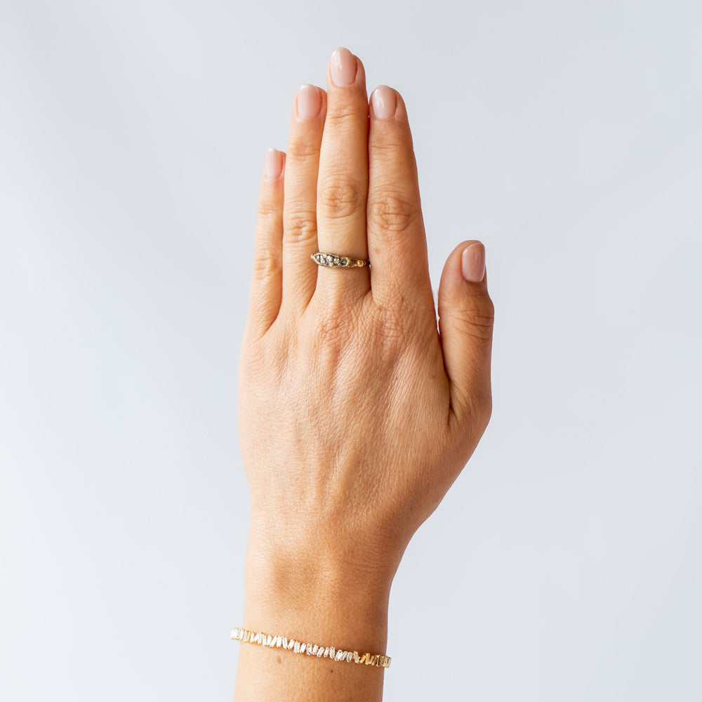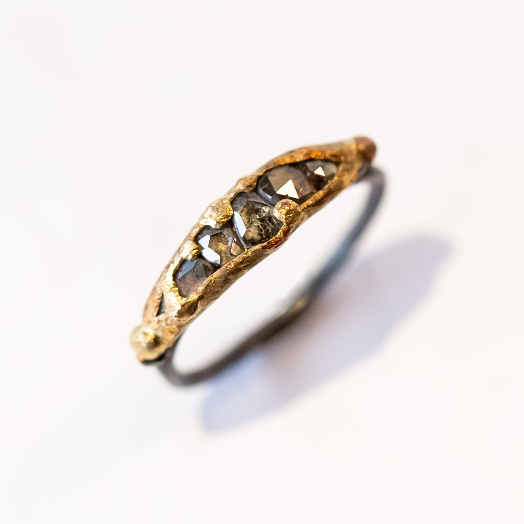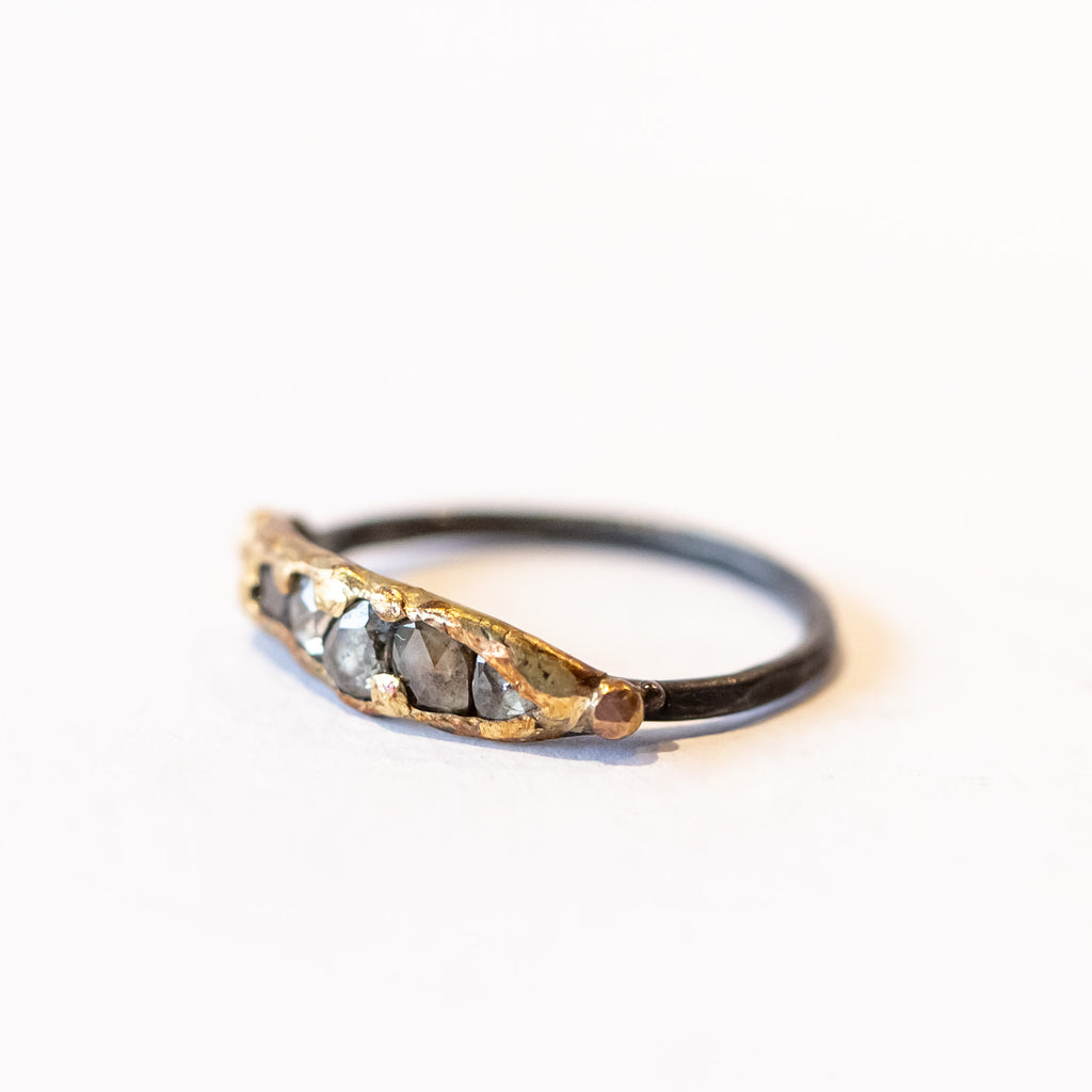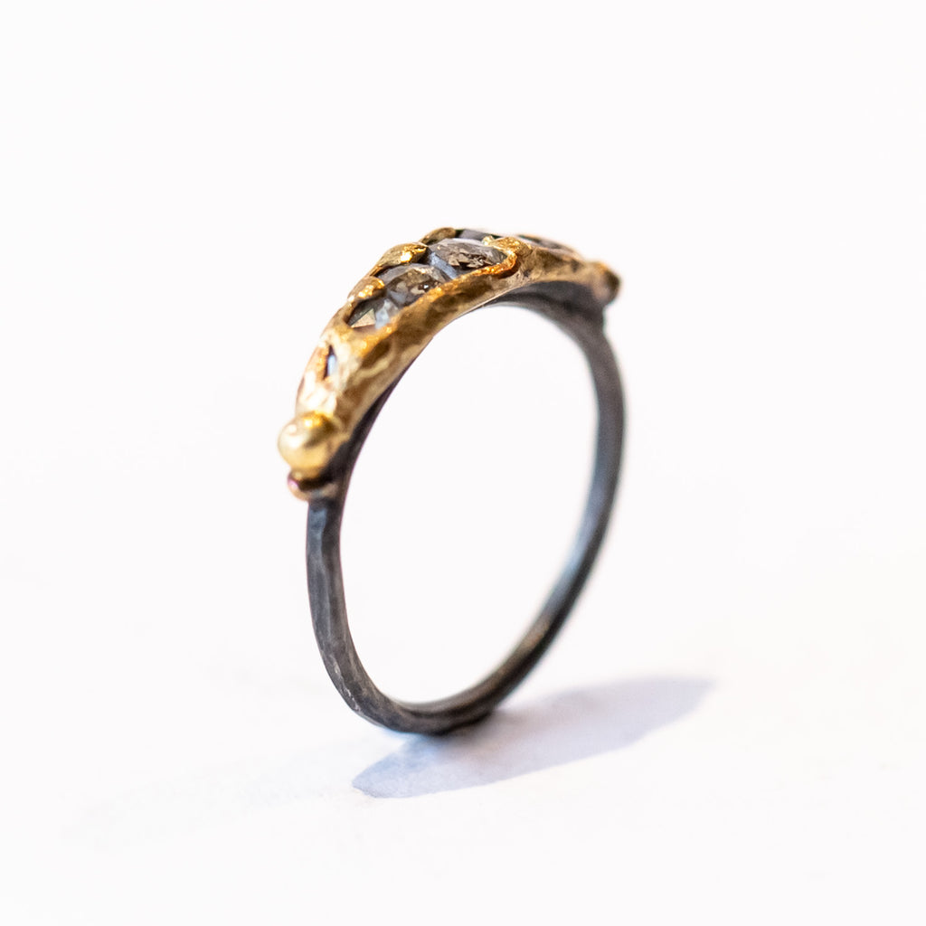 Made with a mix of oxidized 14k, 18k and 22k gold on an oxidized sterling silver band