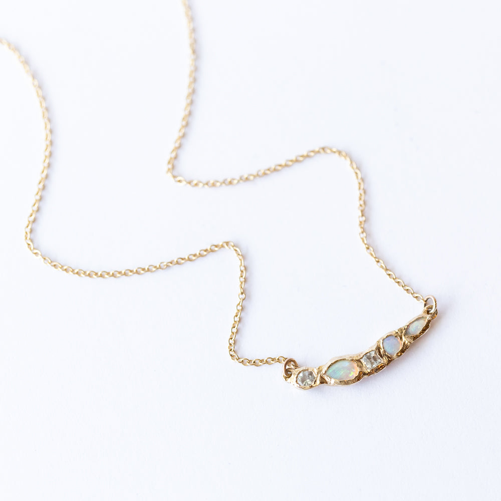 Opal brings intuition and play, aquamarine keeps your calm on lock, and together they give major mermaid-core energy. We love it solo with a deep V neckline or layered into your usual chain mix for a dreamy upgrade.