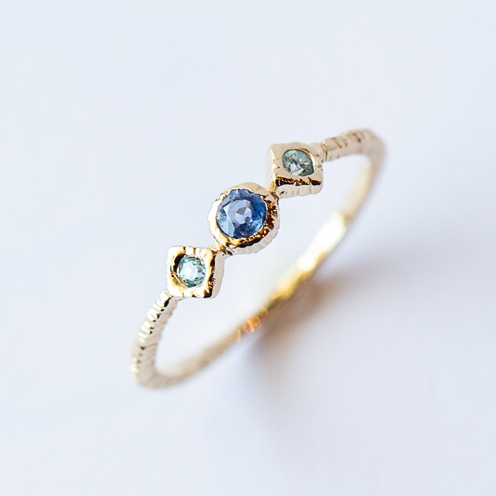 Danielle Welmond | Sapphire Ring with Aquamarine Accent Stones