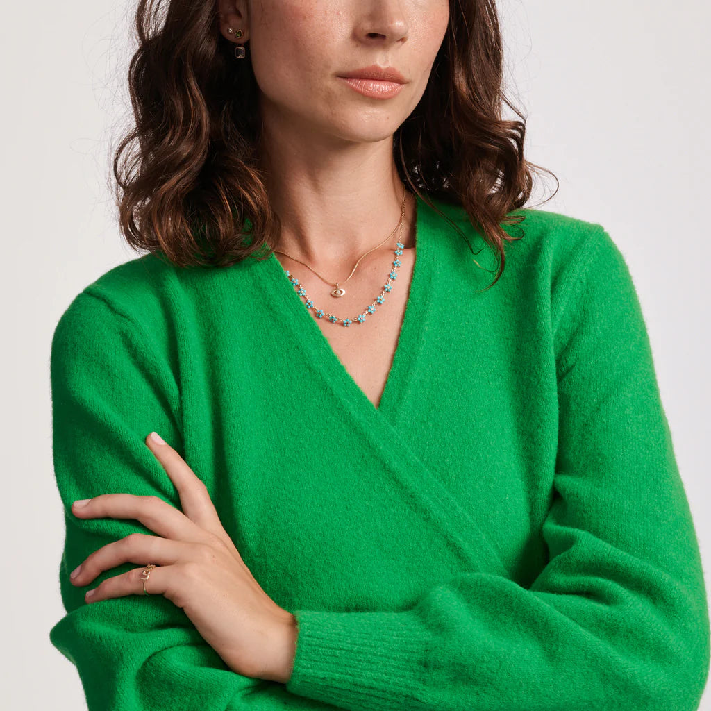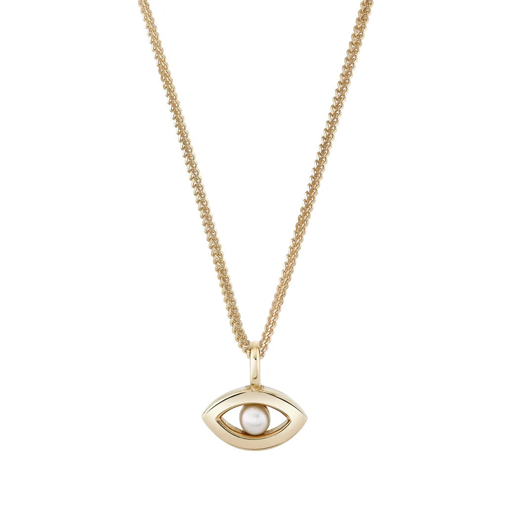 This chunky evil eye charm offers a fresh twist on a classic protective symbol. Crafted in 14k gold, its luminous pearl pupil gives it an unexpected softness while still carrying the age-old meaning of warding off negativity. Whether worn solo on a chain or layered into a charm stack, this piece brings both intention and style to your everyday jewelry rotation.