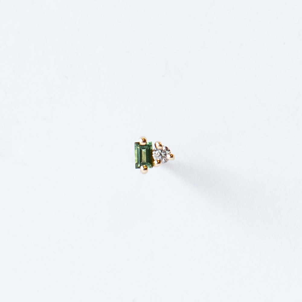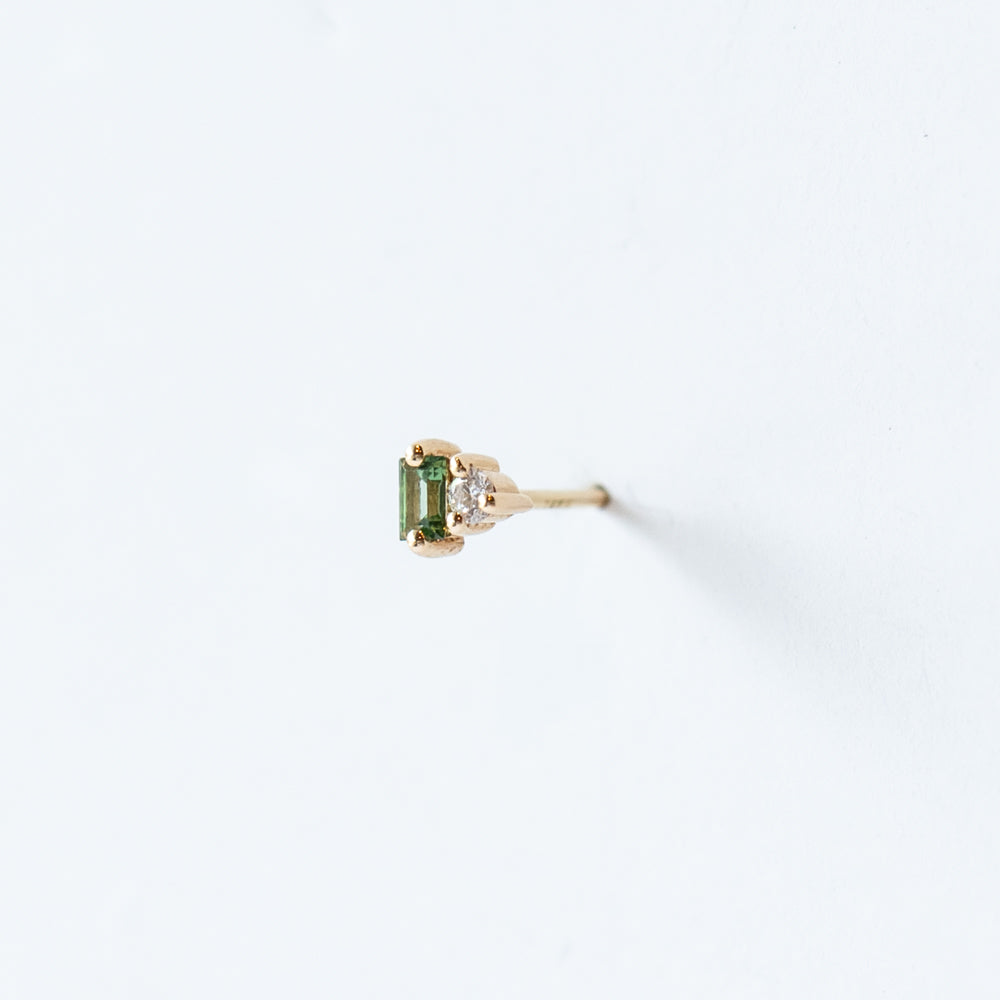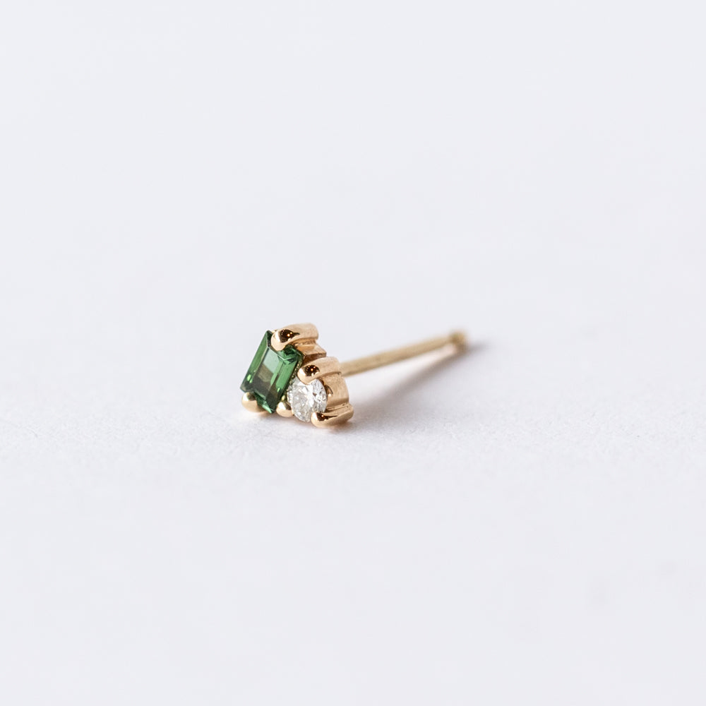 Like the architectural lines it’s inspired by, the Column Stud Earring by Wwake brings refined structure to your ear stack. Crafted in 14k yellow gold, this single stud pairs a crisp baguette-cut green tourmaline with a tiny round white diamond for a fresh pop of color and sparkle. It’s a nod to traditional masonry, but make it mini and oh-so-modern.