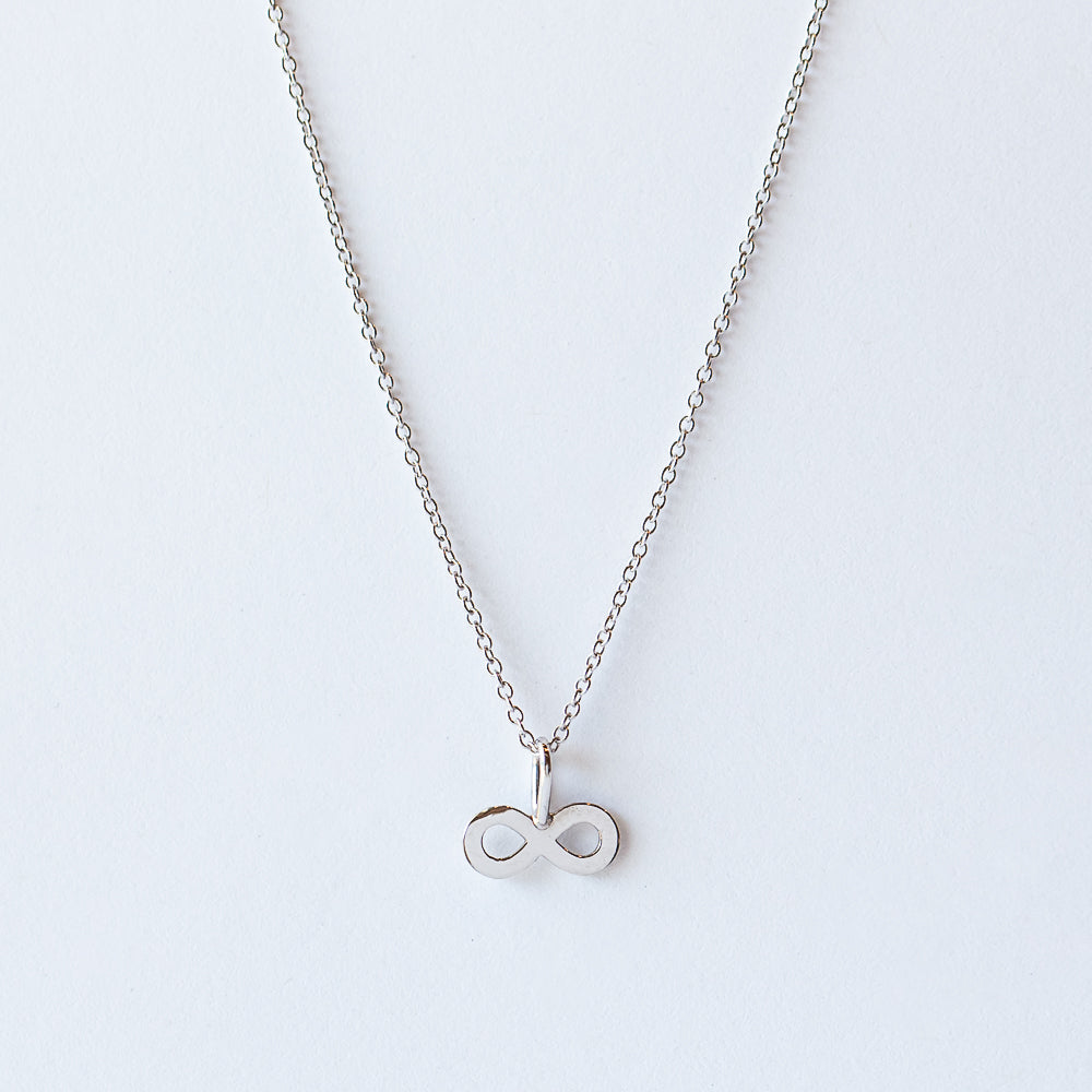 A delicate infinity symbol in polished 14k white gold, perfect for layering or wearing solo. Its sleek, minimalist design carries a timeless message of continuity and connection while adding a subtle, modern sparkle to any chain. A versatile everyday charm that blends effortlessly with your favorite stacking pieces.