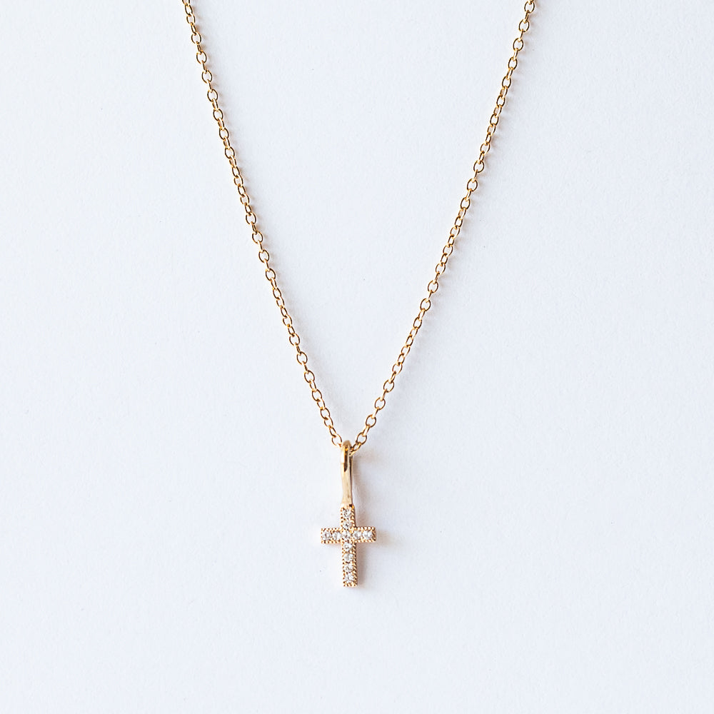A delicate cross charm is set with tiny pave diamonds for just the right amount of sparkle. Crafted in gold, it’s an easy piece to add to a chain or charm bracelet, bringing a subtle layer of shine and symbolism. Diamonds, April’s birthstone, represent love, strength, and clarity, giving this charm meaning beyond its sparkle. Wear it solo as a minimalist statement or mix it into your everyday collection.