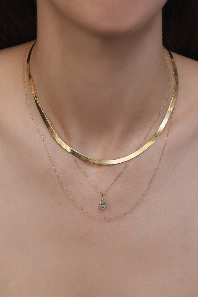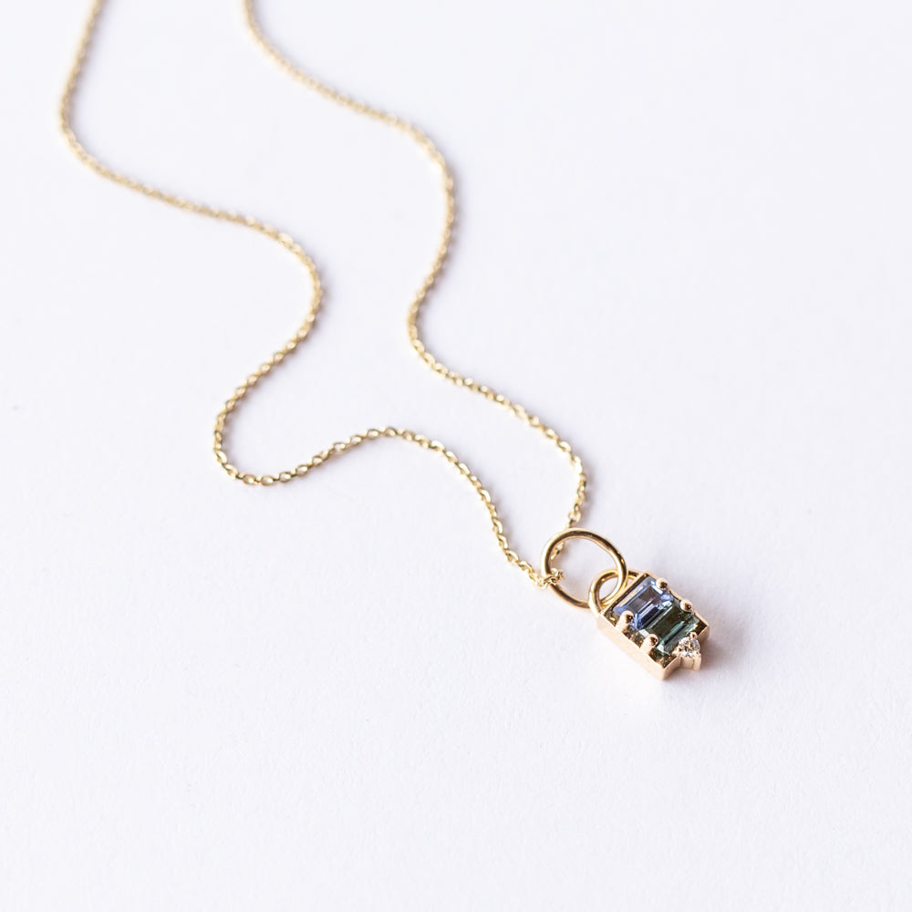Light blue sapphire, green tourmaline, and diamond come together in a clean, baguette cut that adds subtle pops of color and sparkle to any look. Whether layered with your favorite chains or worn solo as a statement of intention, this necklace is effortlessly versatile for everyday wear or special occasions.