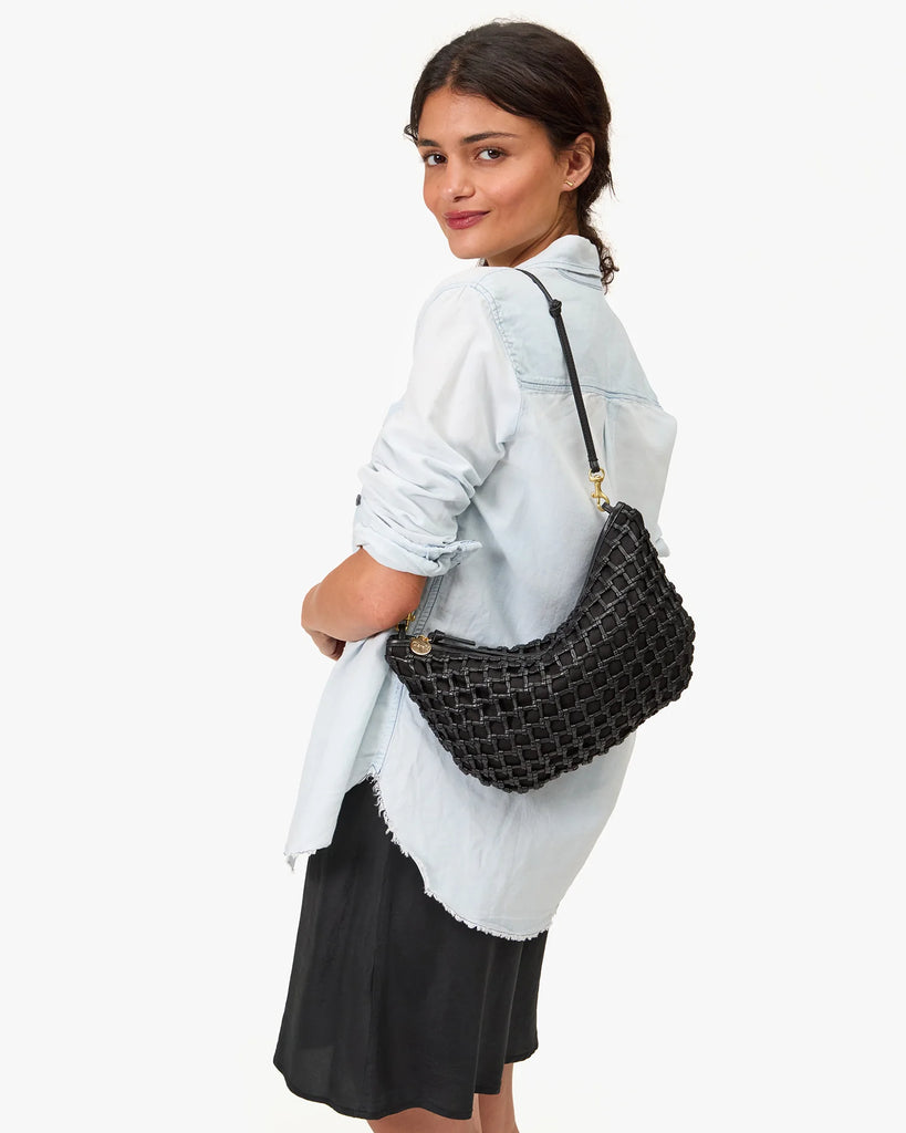 Clare V. | Lune Shoulder Bag, Black Knot Woven Leather