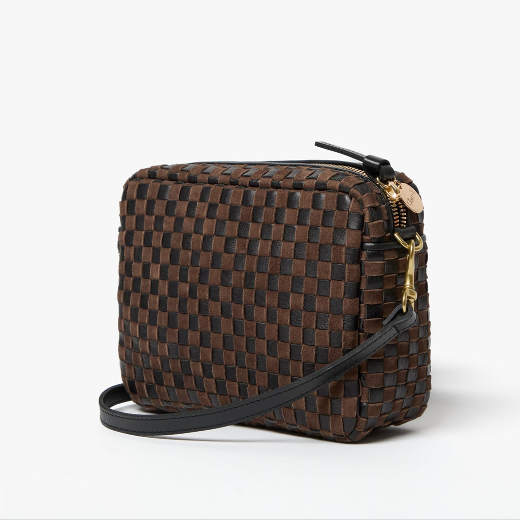 Clare V. | Midi Sac, Black and Chocolate Woven Checker Suede