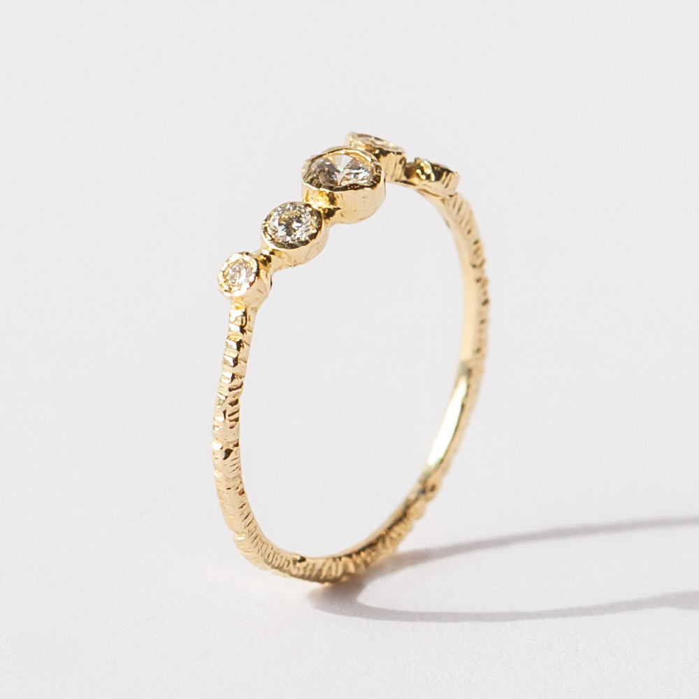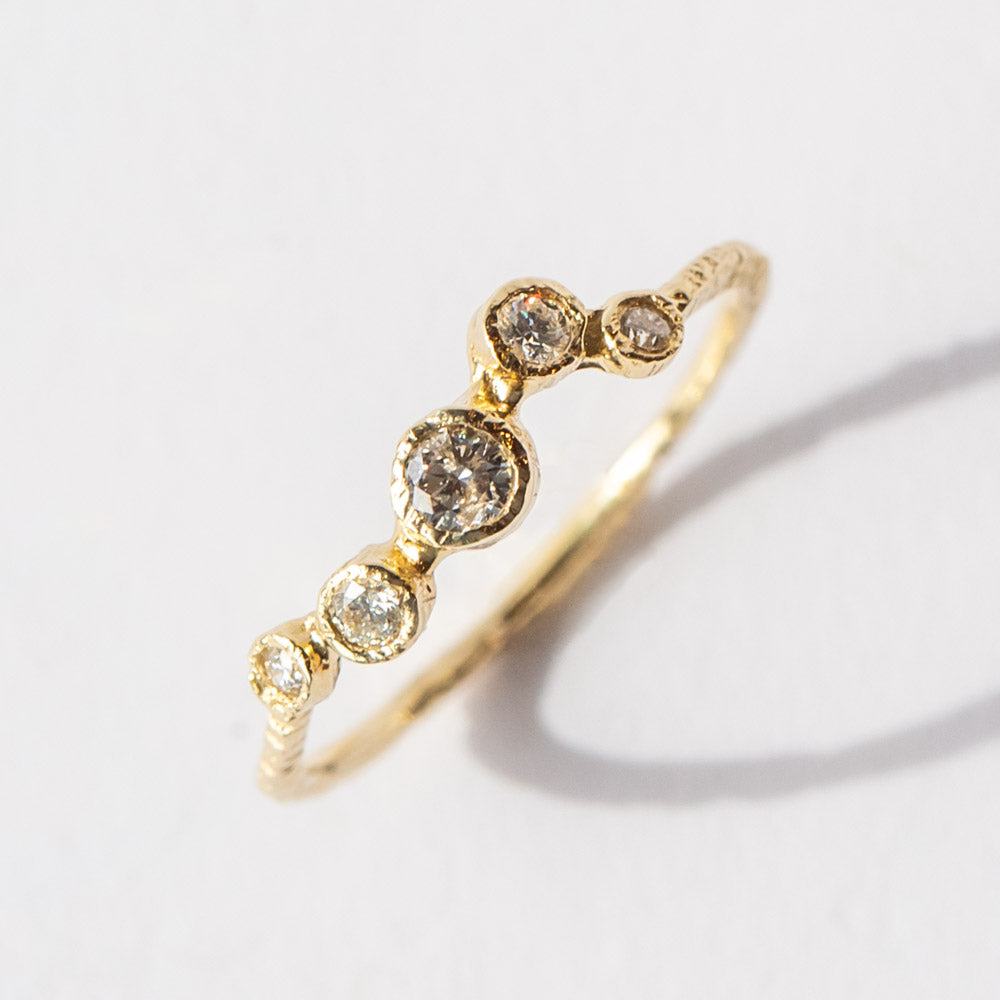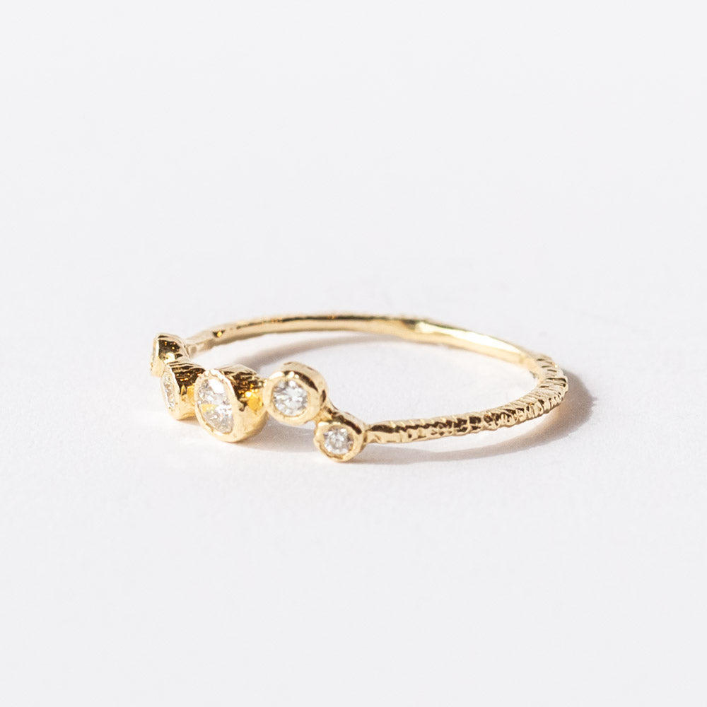 Danielle Welmond’s Five-Diamond Wave Ring flows with effortless, modern energy. Five sparkling diamonds ride a gently undulating 14k yellow gold band, catching light from every angle. Subtle, sculptural, and endlessly wearable, this piece adds a little sparkle to your everyday stack.