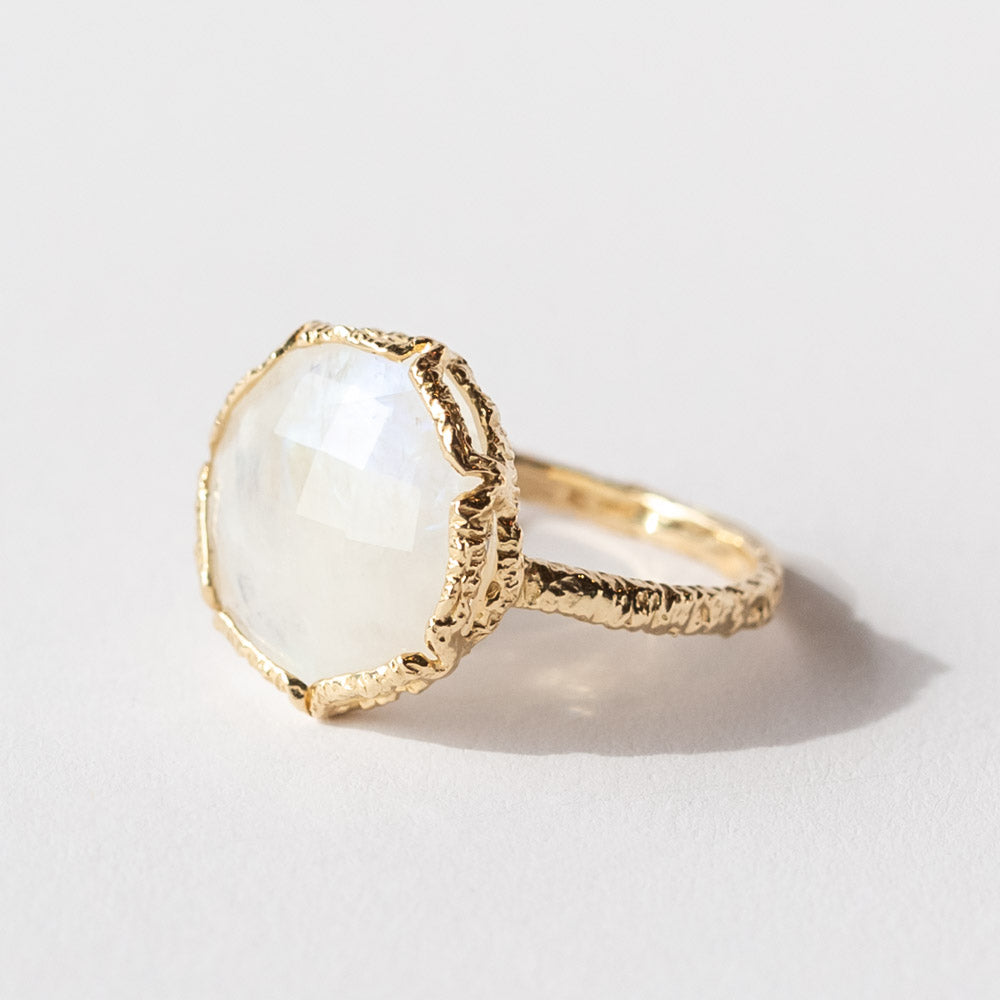 Moonstone is June’s birthstone and a favorite for intuition, new beginnings, and emotional balance. Whether worn as a standalone statement or stacked with other textured bands, it'll give you that soft, luminous magic that you're after.