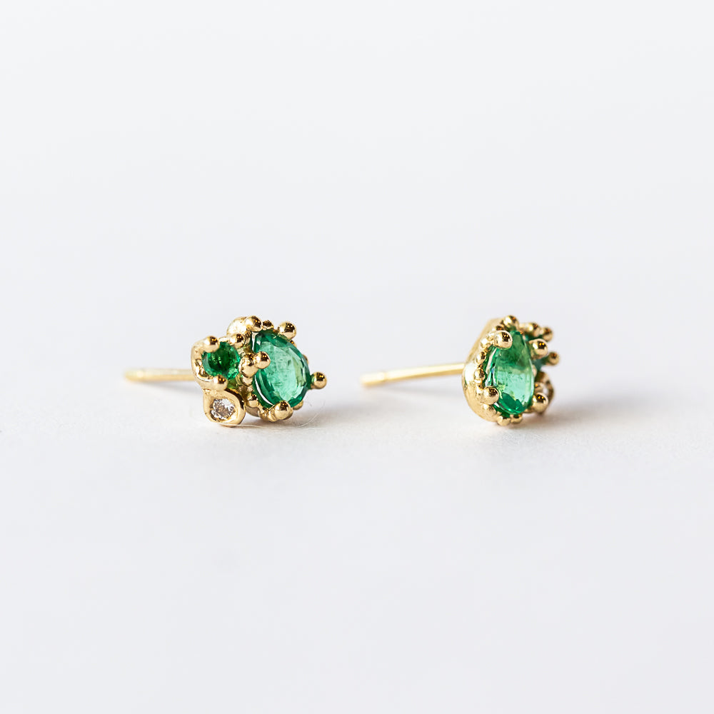 Ruth Tomlinson | Emerald and Diamond Mixed Cluster Stud Earrings