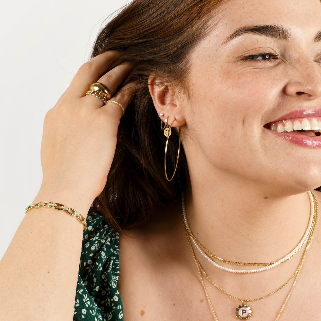 Ariel's new favorites...the XL Endless Hoops are big and kind of perfect. Just like the rest of our Endless Hoops, they are constructed from solid gold wire (aka they won't dent like other flimsy hoops) but are still light weight enough that you'll barely feel them and want to wear them daily.