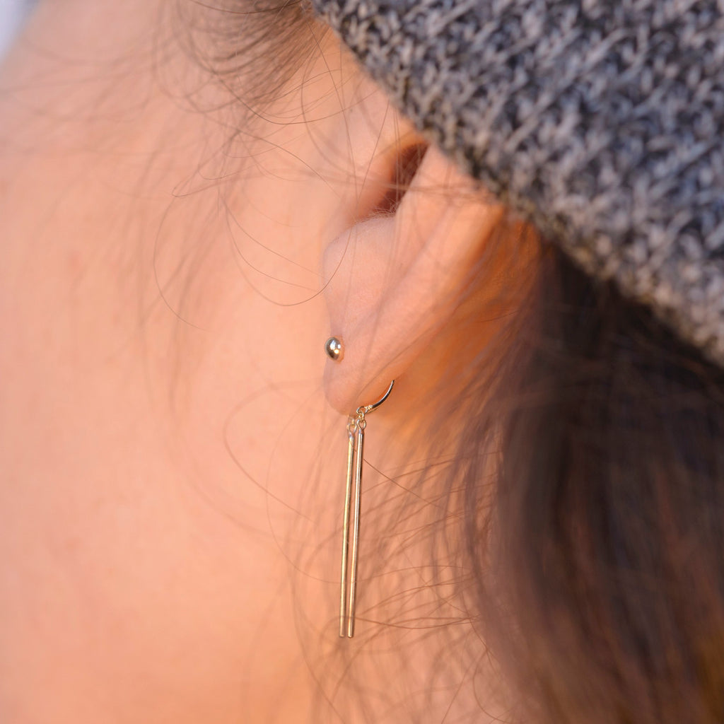 A fun addition to your ear stack, Jack + G's Diamond Chime Stud does it all. They're designed with a single chime suspended below a gold ball stud set with a brilliant white diamond. You put it on like a threader (no back needed!) and it'll sway with your every move.