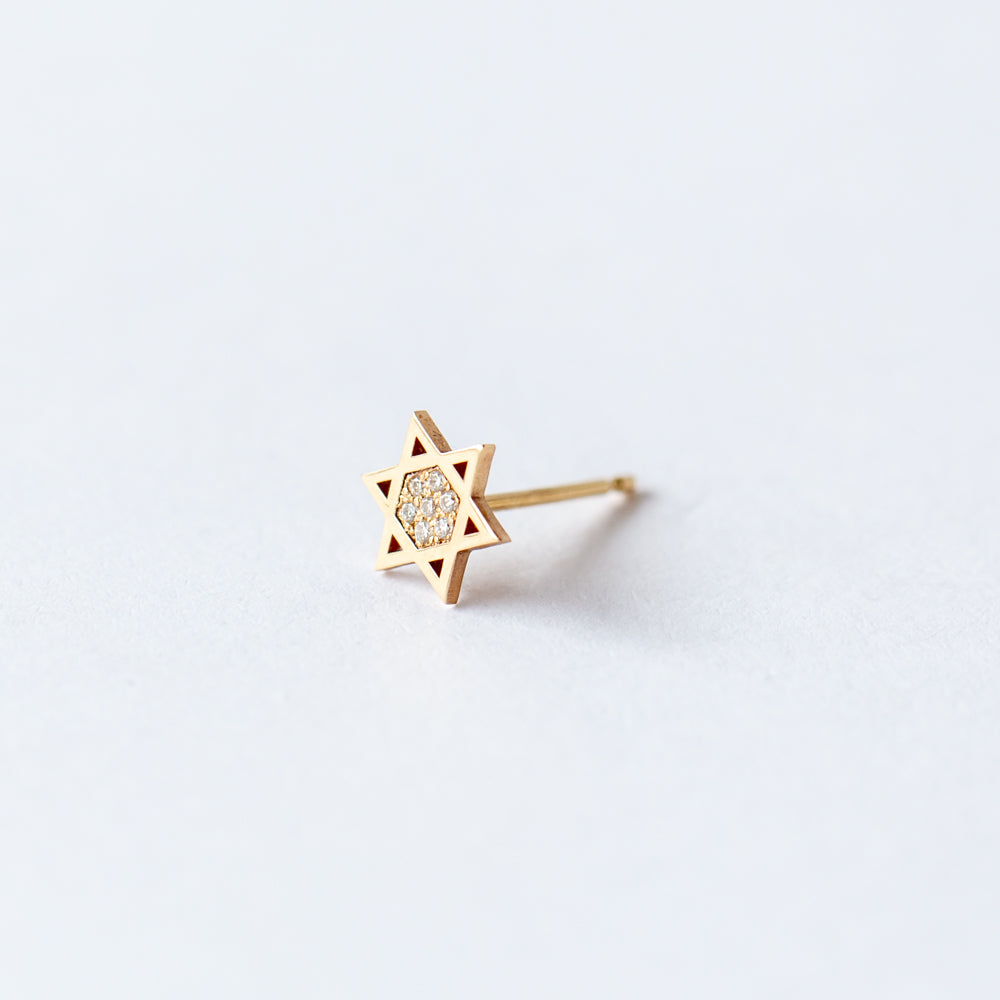 Star of David stud earring set in 14k yellow gold with pave diamonds