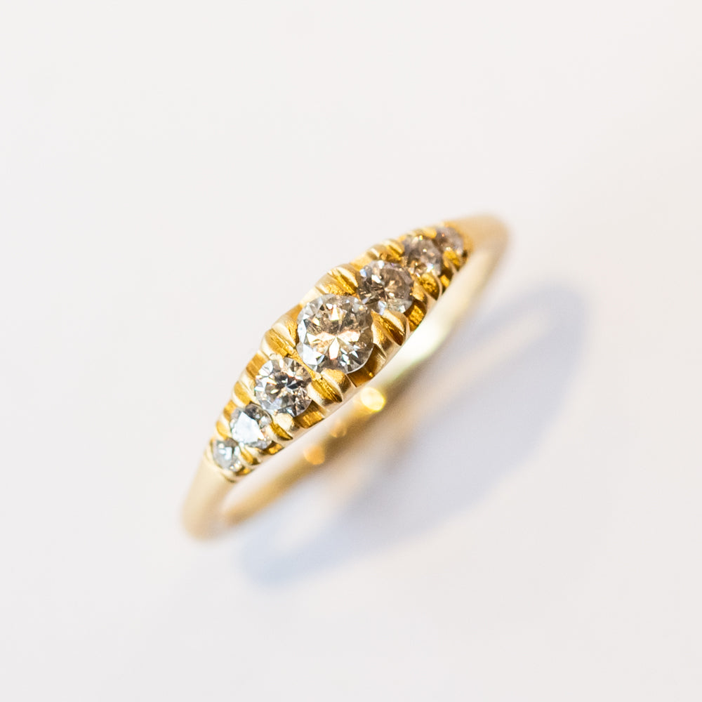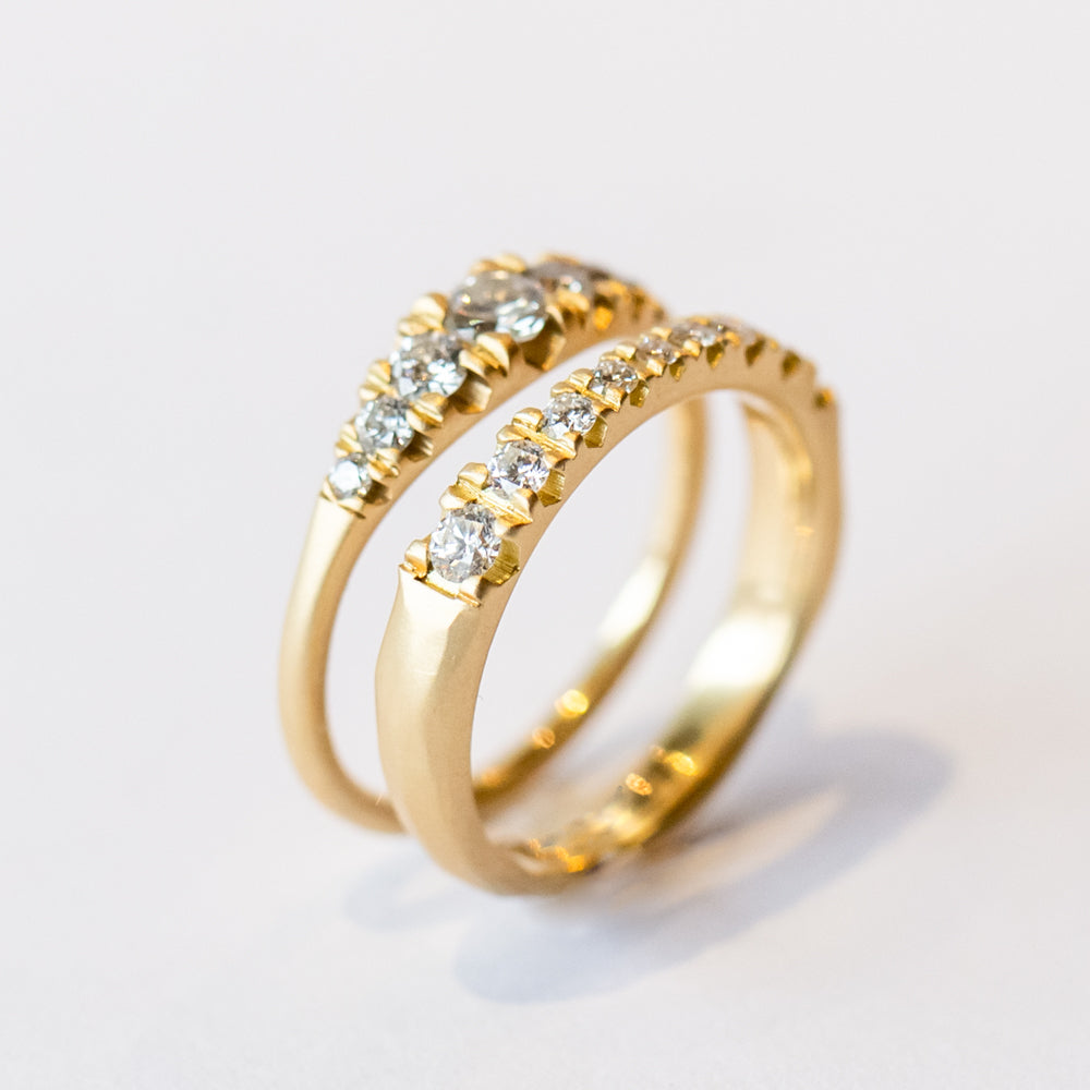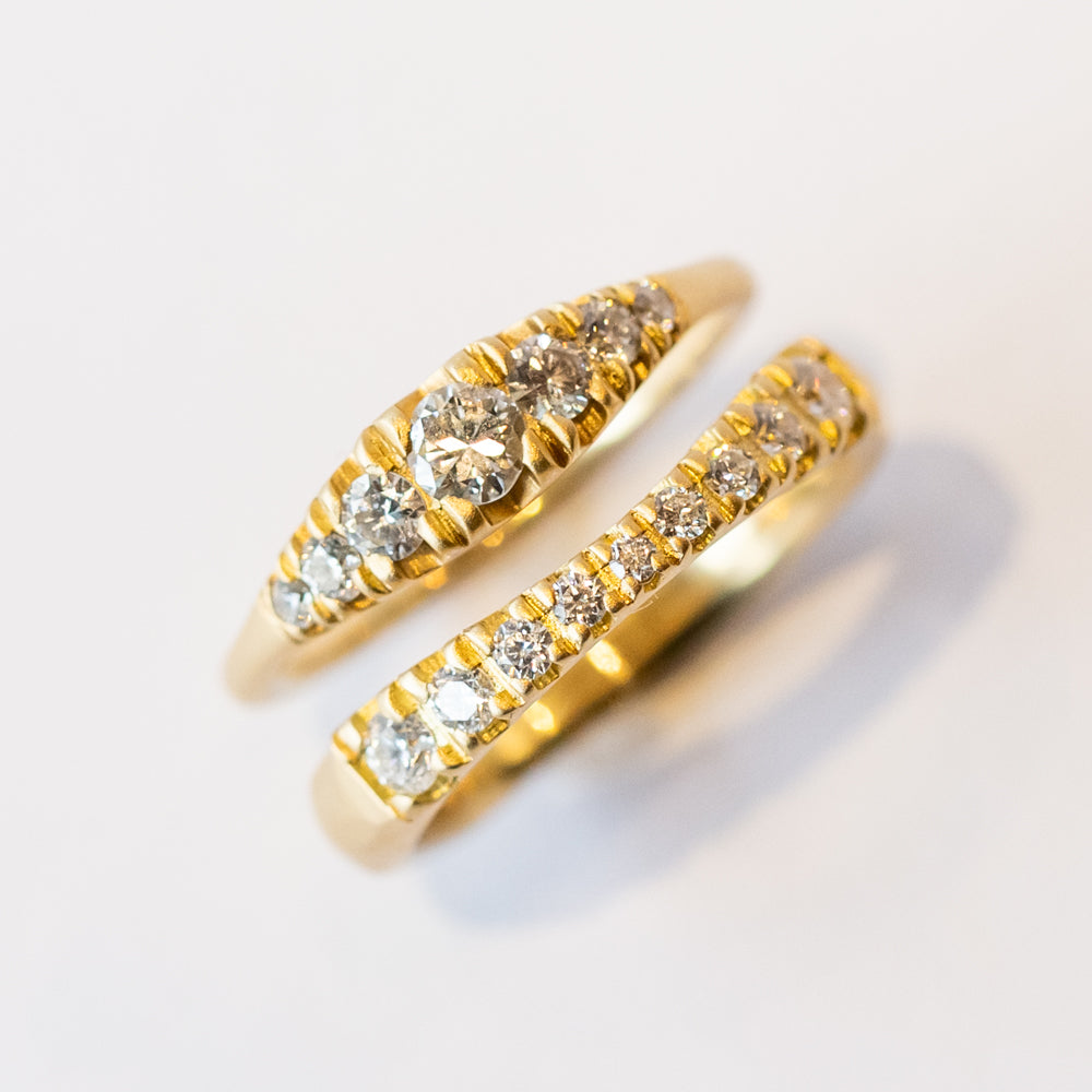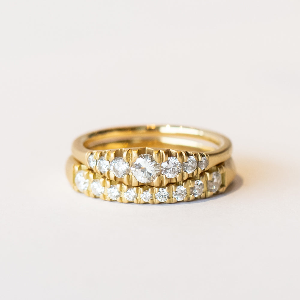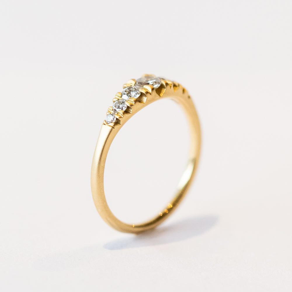 With curves in all the right places, this pave diamond band is named after Mt. Rubidoux in Riverside, California and plays off a Victorian ring style, with a modern twist. It's crafted in matte-finished 18-karat yellow gold and set with a line of graduated-size round white diamonds across the top. Wear it solo, as a unique engagement ring, as a stacking ring, or paired with its perfect match: the Grand Trellis Band.