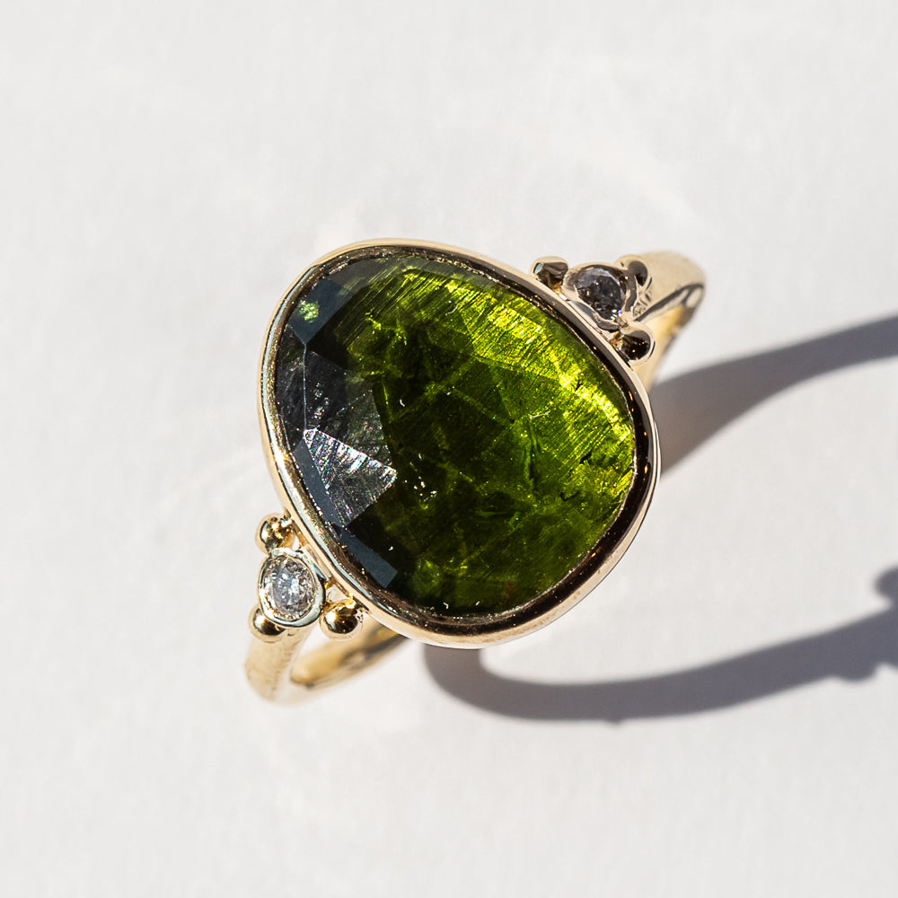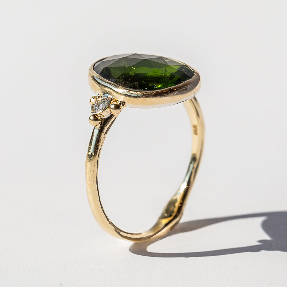 Emily Amey | Moss Green Tourmaline and Diamond Ring