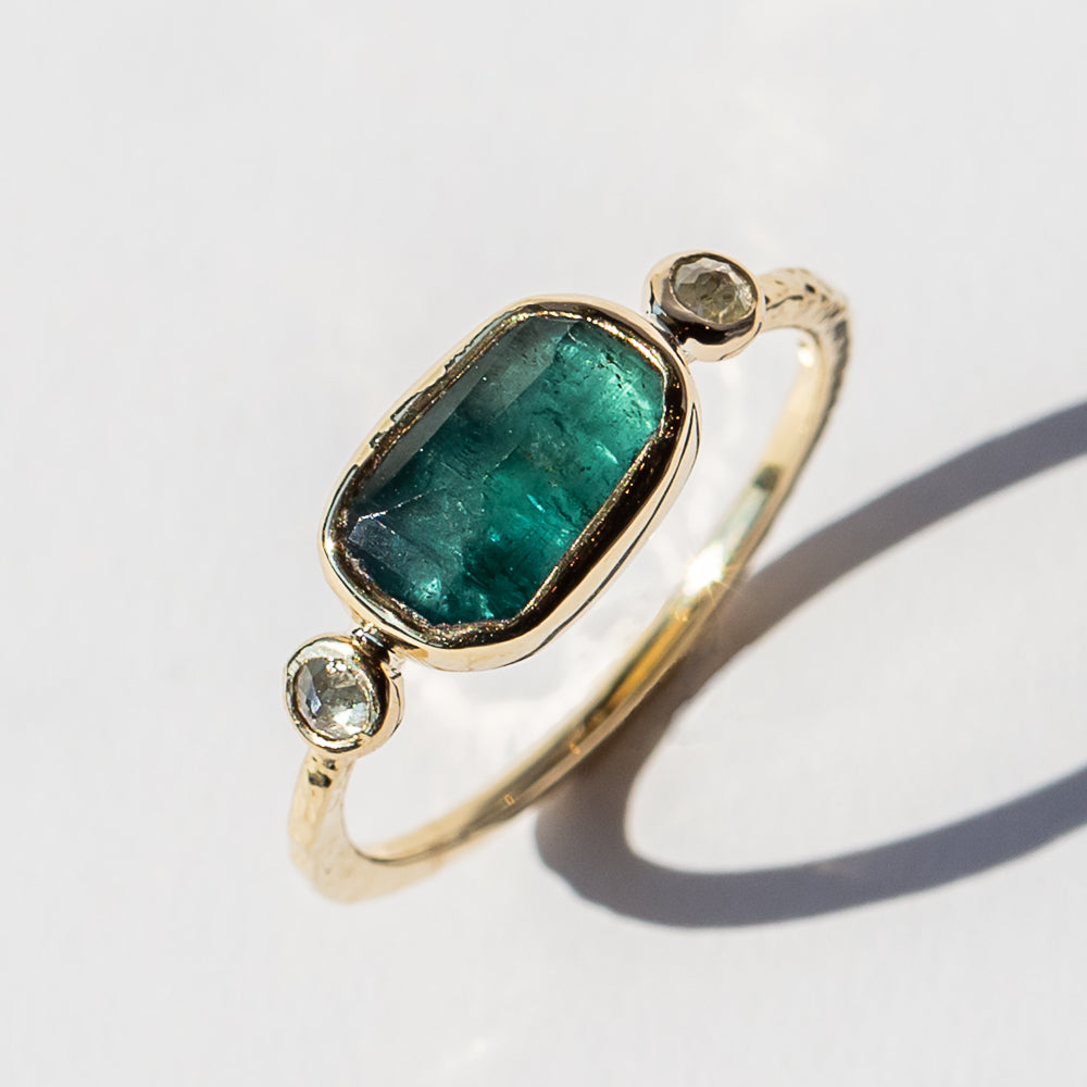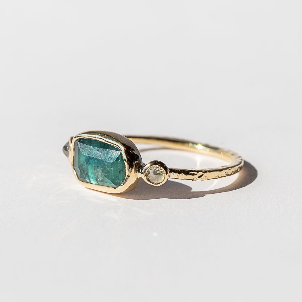 Emily Amey | Teal Tourmaline and Salt and Pepper Diamond Ring