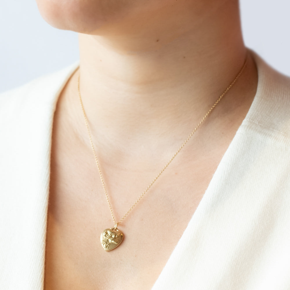 A love letter in gold—this women’s heart necklace is the perfect way to say “I love you” without saying a word. Crafted in solid 14k yellow gold, this delicate yet meaningful pendant is engraved with intricate California poppies, symbolizing beauty, resilience, and dreams. Whether you're celebrating a special occasion or just want to add a timeless piece to your collection, this necklace makes an unforgettable choice.