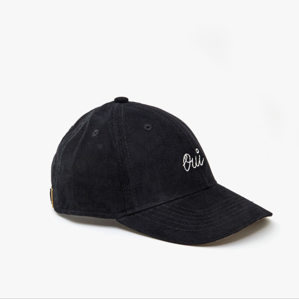 A subtle nod to French flair. Clare V.’s corduroy baseball hat in black features soft texture and delicate white Oui embroidery, making it a versatile accessory for anyone. Effortless for weekends, errands, or pairing with your favorite Clare V. tees and sweatshirts for an off-duty, cool vibe.