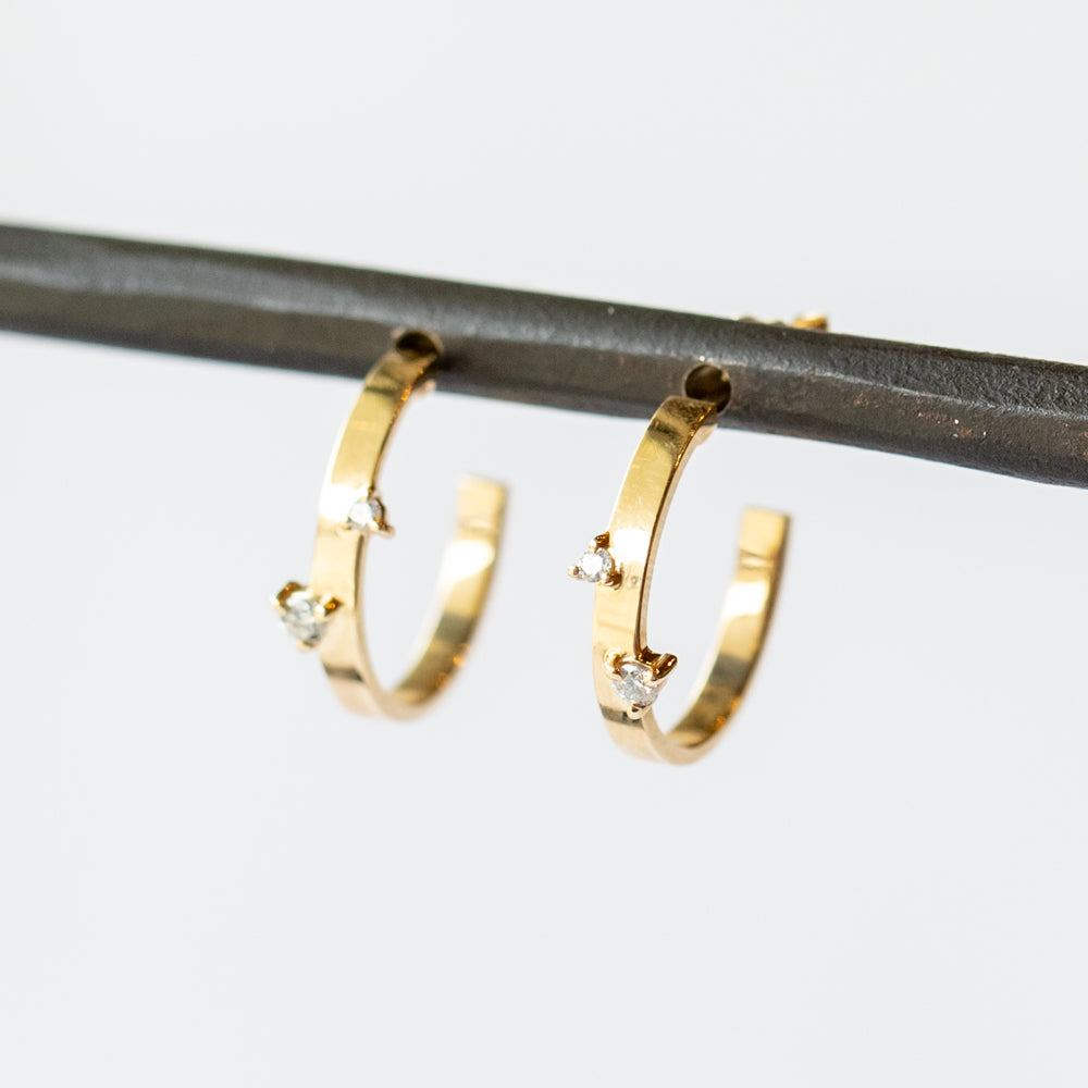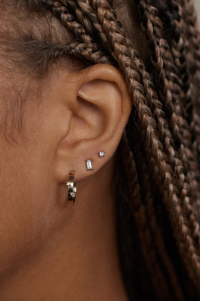 Perfectly sized to be your new everyday gold hoop earrings—only with a twist. The Bove hoops from Wwake have asymmetrically-set diamonds glinting on the surface like dewdrops in the sun. They give this pair of dainty hoops just enough sparkle to stand out. Wear them alone for a minimalist feel or stack them with other earrings from your jewelry collection to create an ear map all your own.