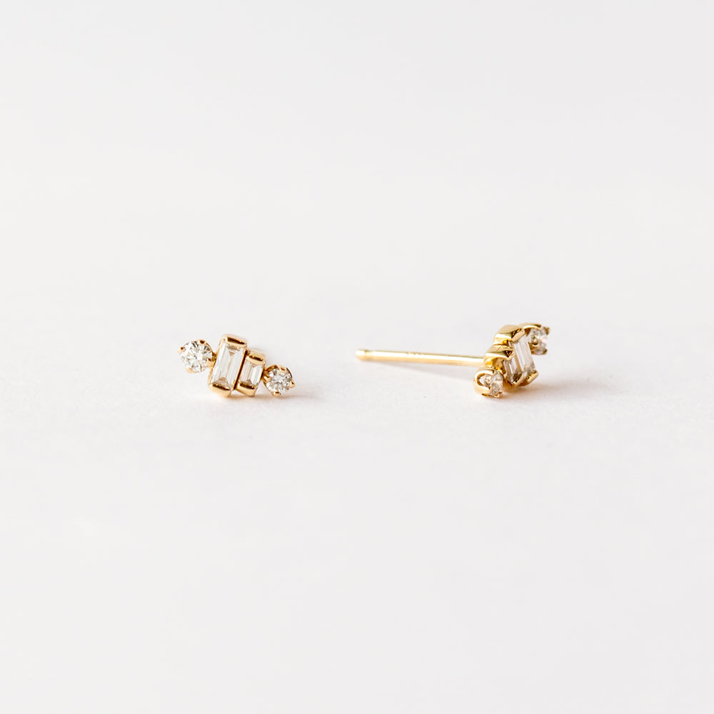 Zoe Chicco | Graduating Baguette and Round Diamond Stud Earrings