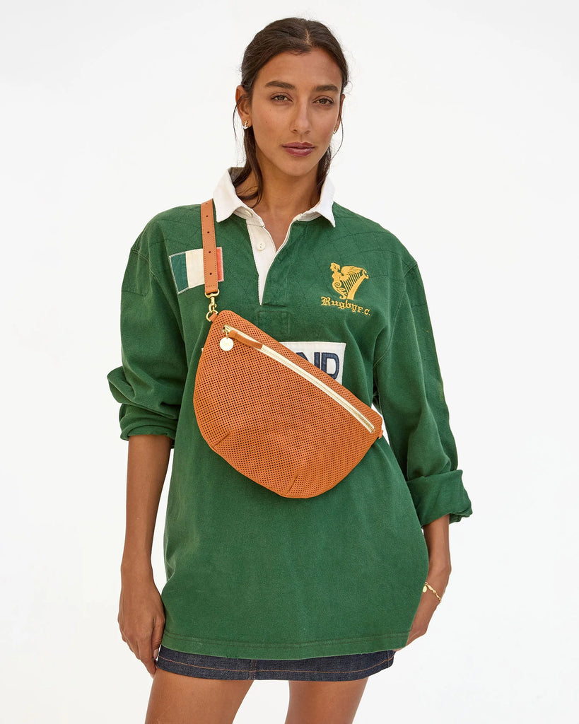The grande fanny is big sister to our classic fanny pack. Three ways to wear - at the waist, across the body, or on the shoulder. Slim profile with surprising capacity. Detachable / adjustable / interchangeable strap.