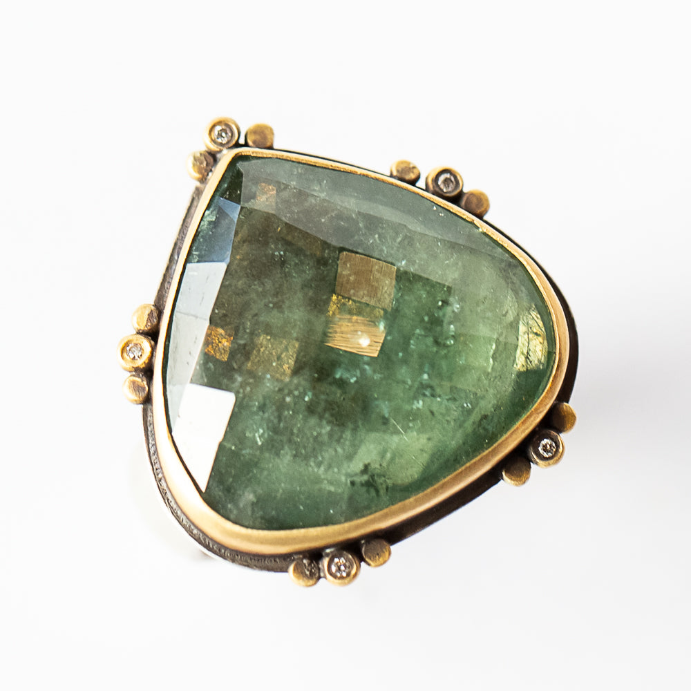 Ananda Khalsa | Large Pear-Cut Blue-Green Tourmaline Ring with Diamonds