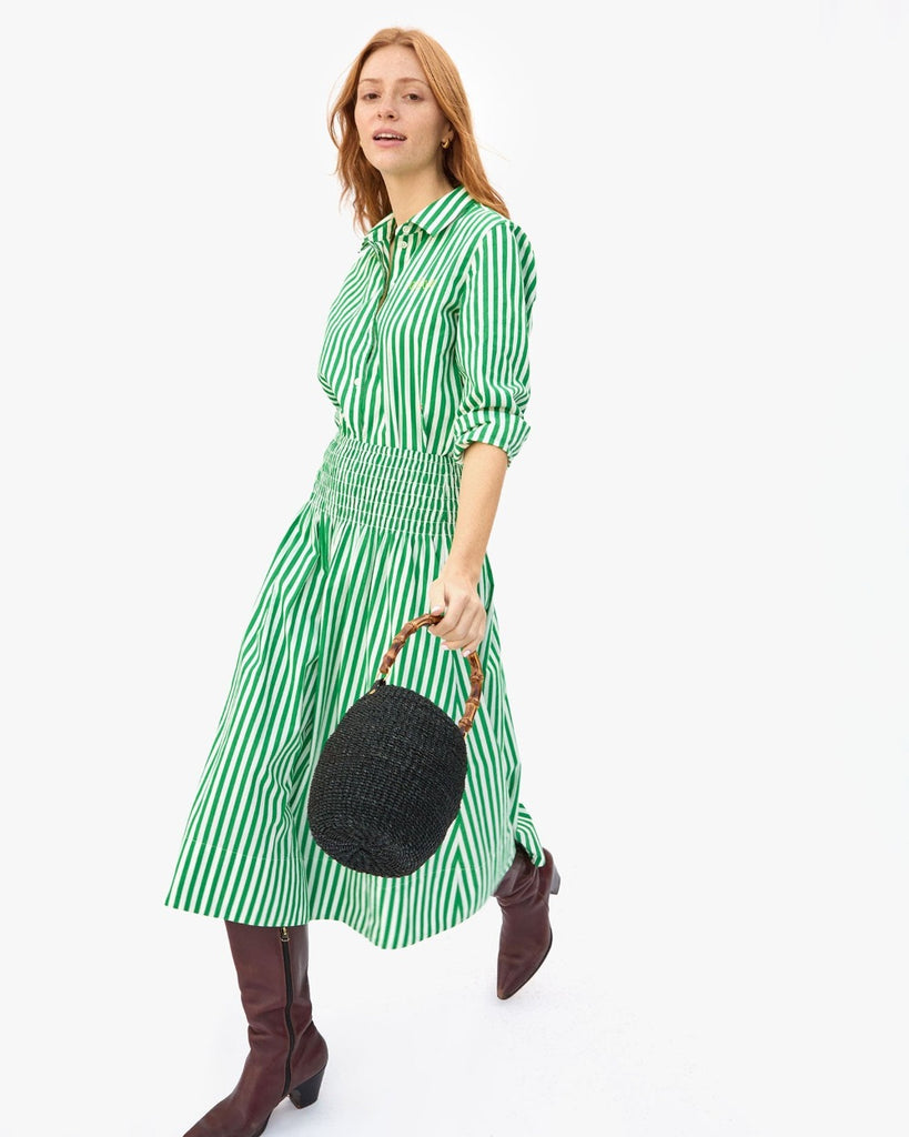 Our favorite basket bag now with a bamboo handle! This deep black woven basket-style handbag is just the cutest. The open top and structured barrel form let you throw all your goodies in—think sunnies, wallet, and cellphone—and go. Perfect for brunch outings, the summer wedding circuit, or just plain everyday. Add a Clare V. crossbody strap to convert it to a hands-free bag.