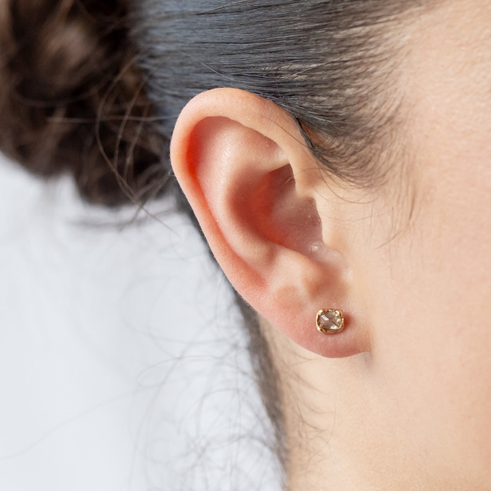 Everyone needs a pair of diamond stud earrings—the little black dress of the jewelry world. Yet, there are plenty of ways to make them your own. In particular, this pair of raw champagne diamond studs from designer Ruth Tomlinson. We love their organic, handcrafted nature, showcasing the natural crystal form of the diamond in warm 14 karat yellow gold bezels.