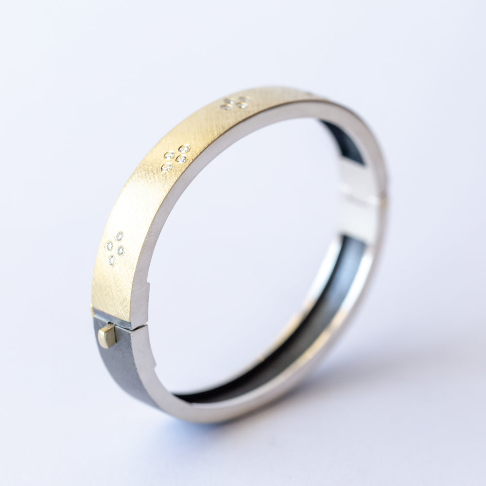 Rene Escobar | Shayna 8mm Silver, Gold and Diamond Bangle