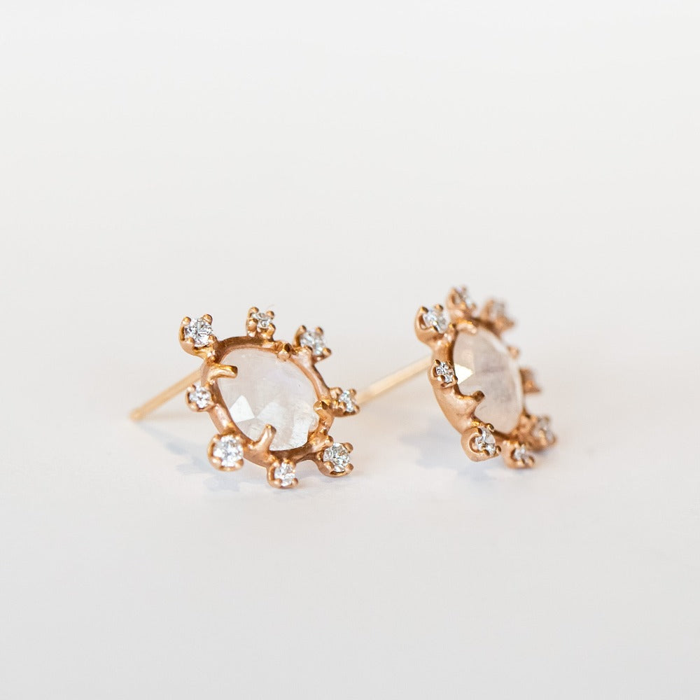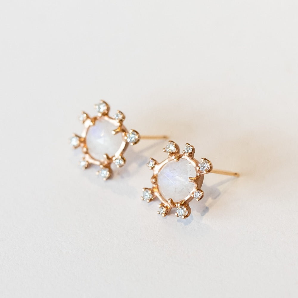 1.20ct rainbow moonstone earrings set in 14k rose gold