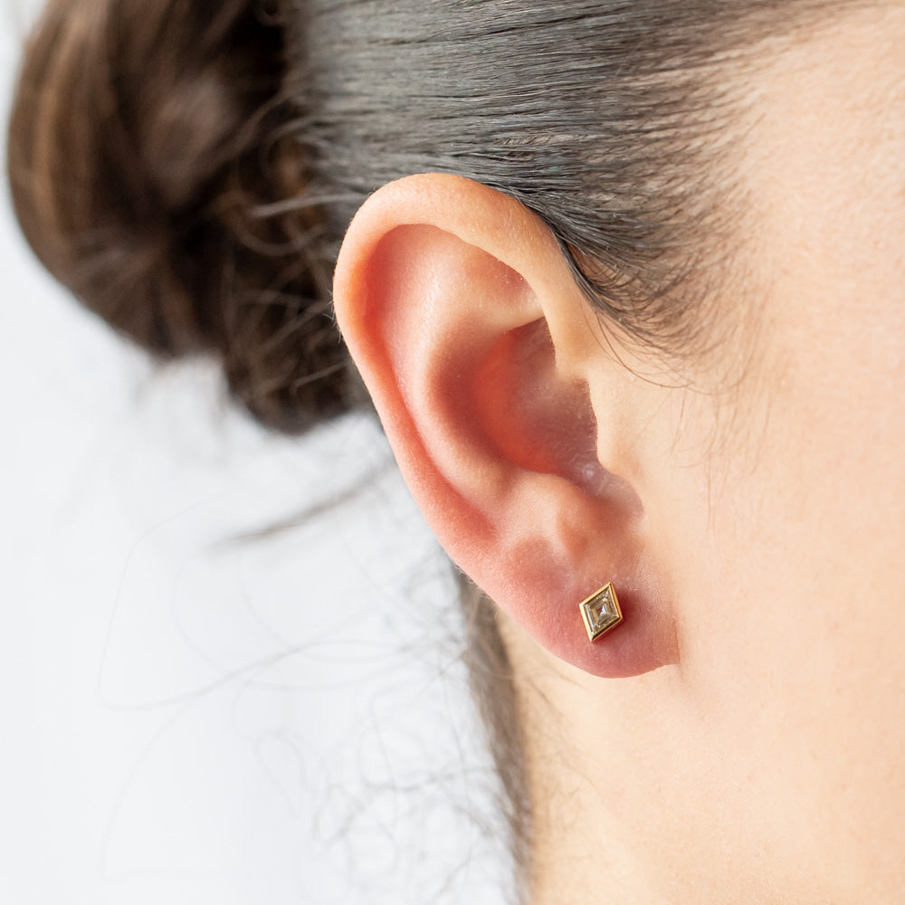 Add a little edge to your look while keeping things super sophisticated. These lozenge-cut diamond stud earrings from Single Stone are a dainty look that makes a bold statement. Bright glittering diamonds are bezel set into polished 18 karat yellow gold, accentuating their angular shape.