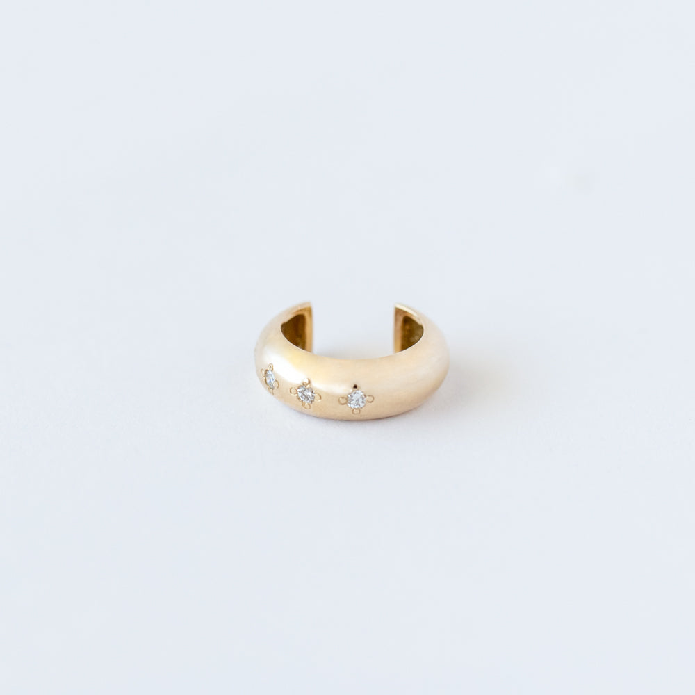 No piercing? No problem. This 14k gold chubby ear cuff brings all the shine with none of the commitment. Five bead-set diamonds sparkle down the center of its rounded form, giving just the right amount of glimmer in a bold, sculptural silhouette.