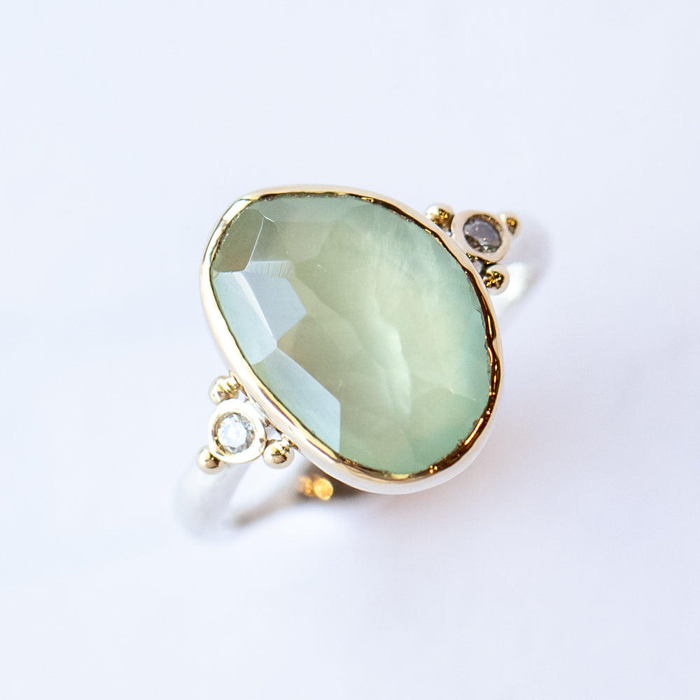 Emily Amey | Prehnite and Diamond Ring