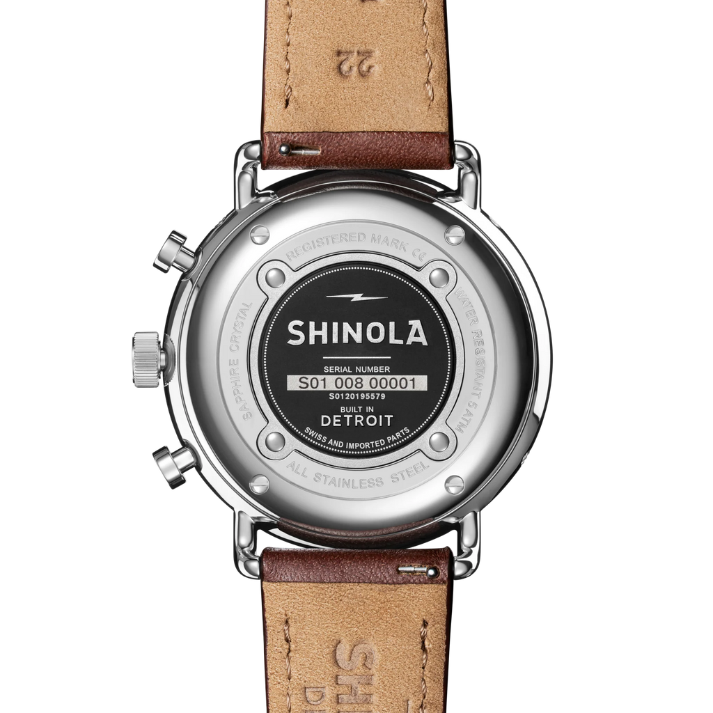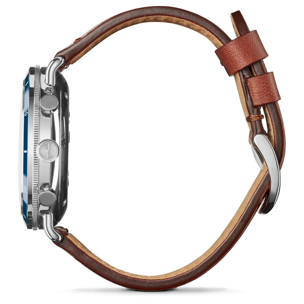 The Canfield Sport is a timepiece where complexity and style take center stage. Built using top-loaded case construction, this 45mm Canfield Sport features a fixed top ring with a ceramic insert and an open dial punctuated with three subdials, making this watch sporty and instinctively classic. The look is completed with a classic dark cognac leather strap. Detailed, thoughtfully crafted, and built to express your style, the Canfield Sport is the essential timepiece to add to your wardrobe.