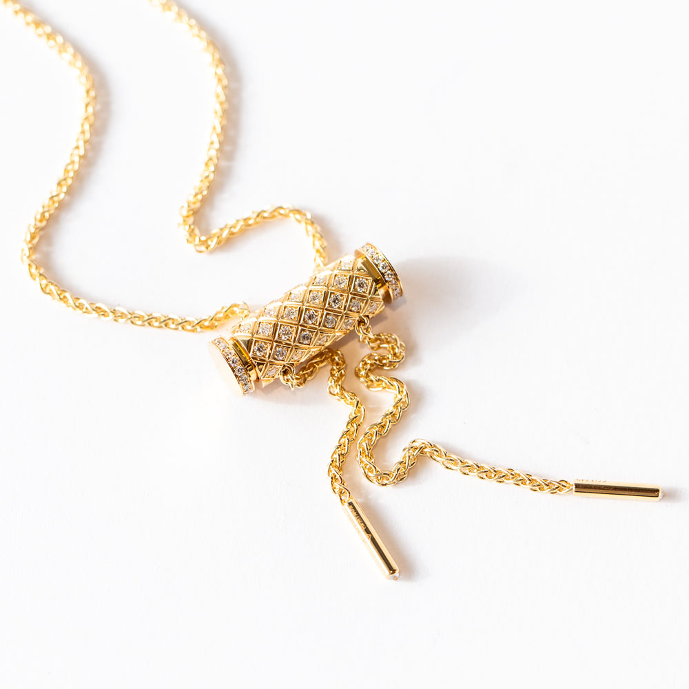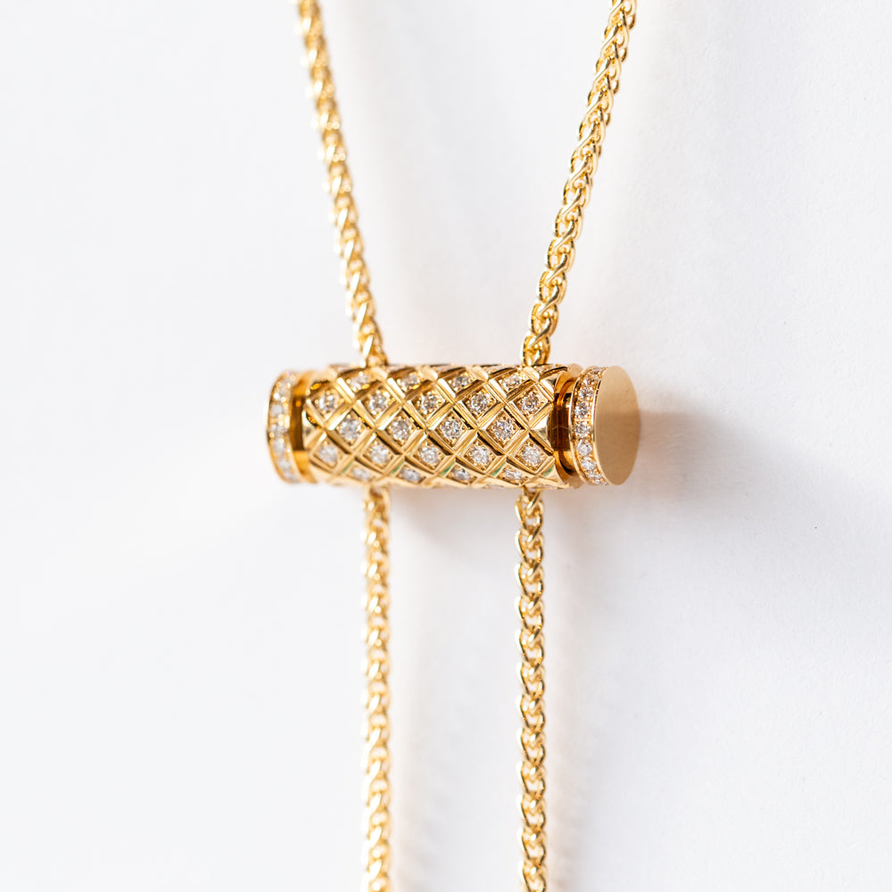 Created to be paired with any Latch chain (sold separately), the pendant locks into place with the signature mechanism: pinch, slide, and release. Wear one as a striking statement or combine multiple pendants—even across gold colors—to create your own signature necklace. A jewel that adapts to you, proving that true luxury is personal.