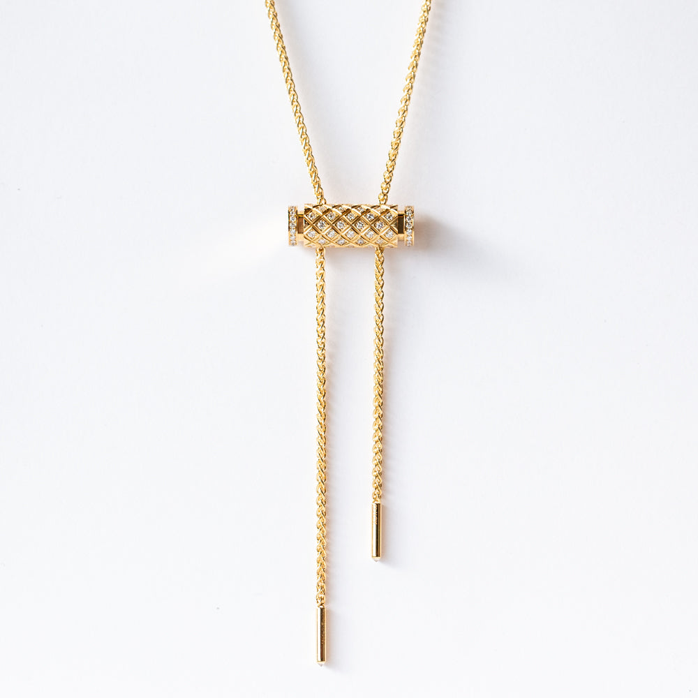 The Latch collection celebrates modularity and imagination—turning simple inspirations into refined design. The Diamond Latch Pendant in 18k yellow gold embodies that vision, set with 0.85 ct of F-G VS diamonds for bold brilliance.