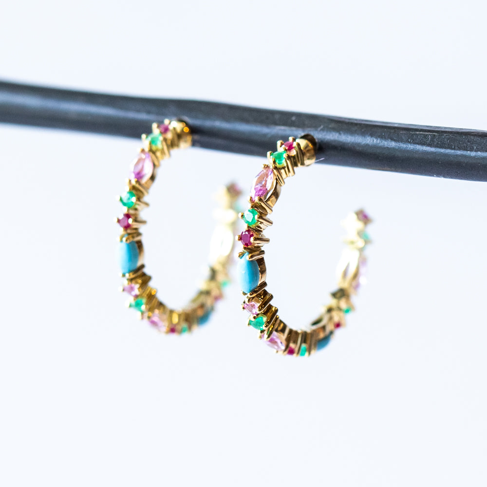 4 Pink Sapphires, 5 Rubies, 6 Emeralds, 2 Turquoise, 1.64tcw