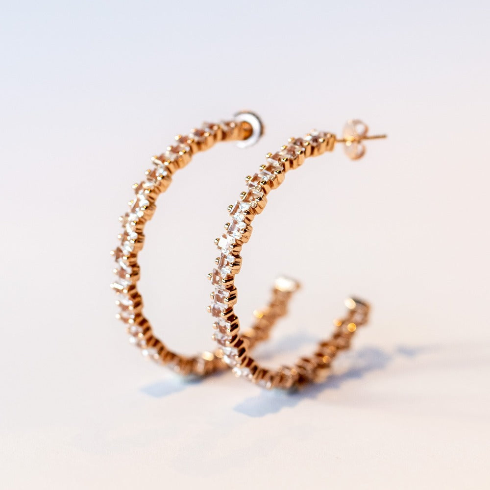 These large hoop earrings make a bold yet refined statement, ideal for adding some major sparkle to your everyday looks or special occasions where you really want to shine. Put them on for a holiday party or dress up your work outfits, these hoops add effortless glam to everything.