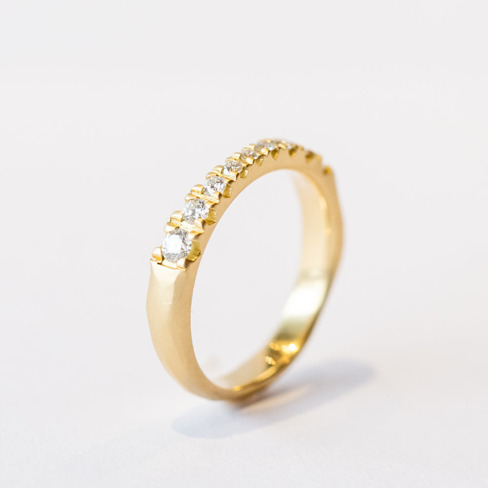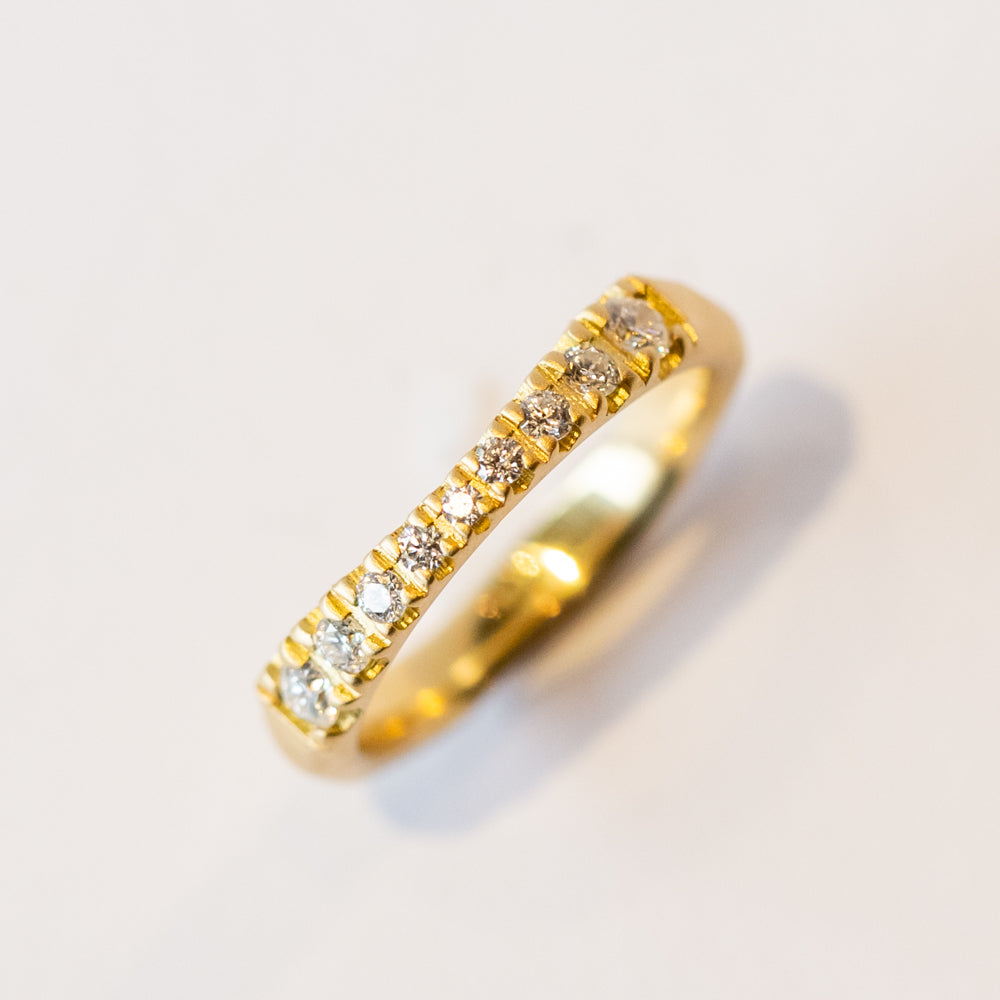 A little vintage, a little modern, and completely timeless. This 18k yellow gold band brings old-world charm into the now with nine antique and recycled diamonds, shimmering together in a graceful, slightly dipped curve. The mix of history and sustainability makes it more than just a ring—it’s a story on your finger. Whether stacked, worn solo, or marking a special moment, this beauty is effortlessly chic. Pairs perfectly with the Grand Pave Diamond Rubidoux Ring.