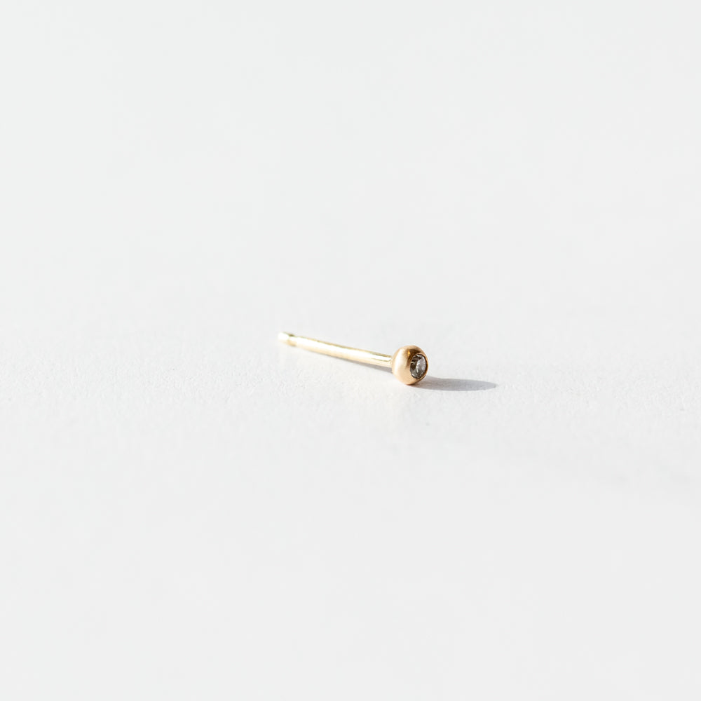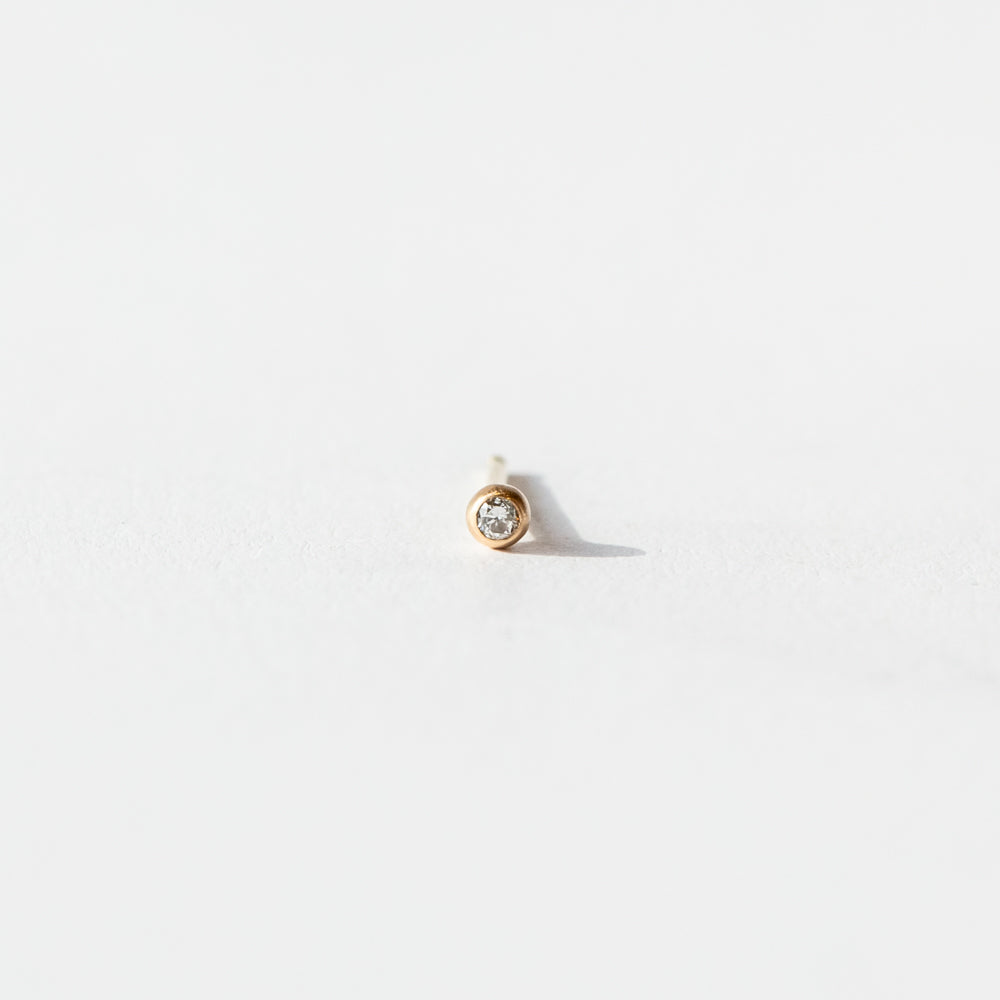 An organic, hand-shaped gold setting holds a dainty round diamond in this tiny stud earring. Beautiful on its own, in mismatched pairs, or as a complement to other earrings.
