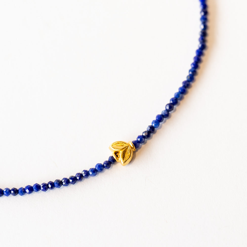 Add a pop of true blue to your everyday bracelet stack with Margaret Solow’s beaded lapis bracelet. Faceted lapis gemstone beads catch the light with every movement, paired with a delicate 18k yellow gold leaf-shaped bead and matching clasp for a touch of luxe. This lapis bracelet is perfect for stacking with other gemstone bracelets or wearing solo as a statement of effortless, everyday elegance. Ideal for December birthstone jewelry gifts or any time you want to channel some good energy.