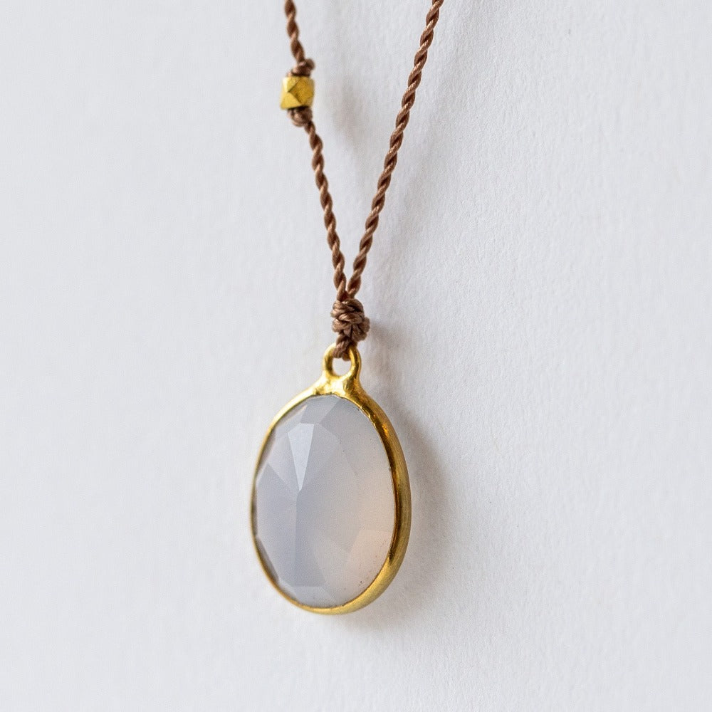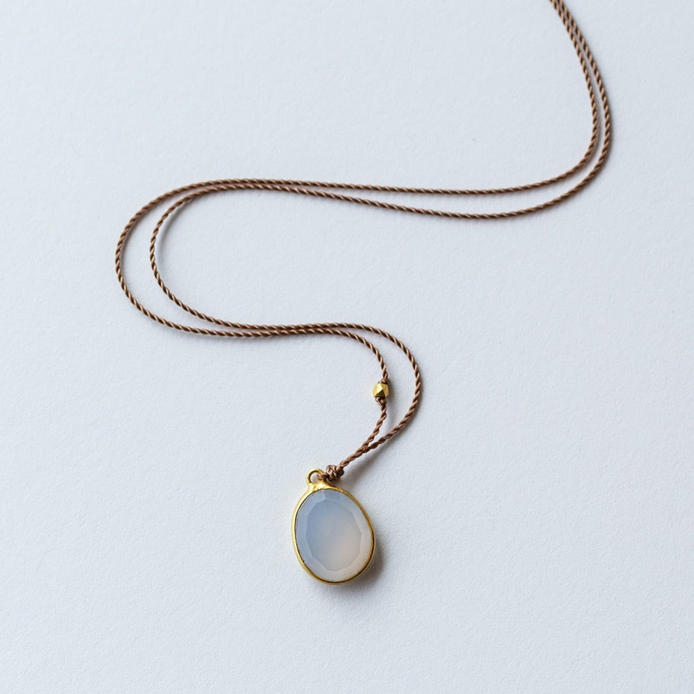 Faceted oval blue chalcedony necklace set in 18k yellow gold