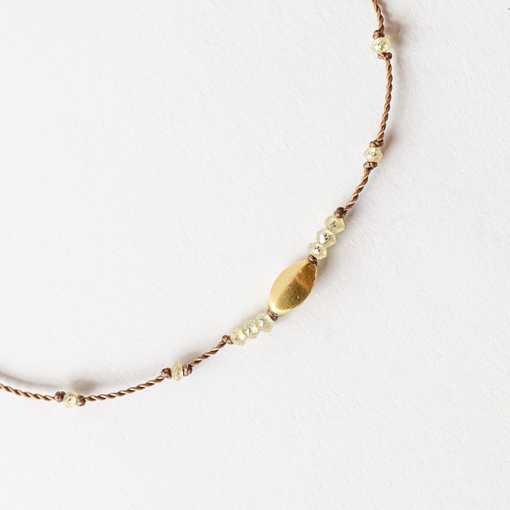 Margaret Solow | Champagne Diamond Cord Bracelet with Elongated Gold Bead