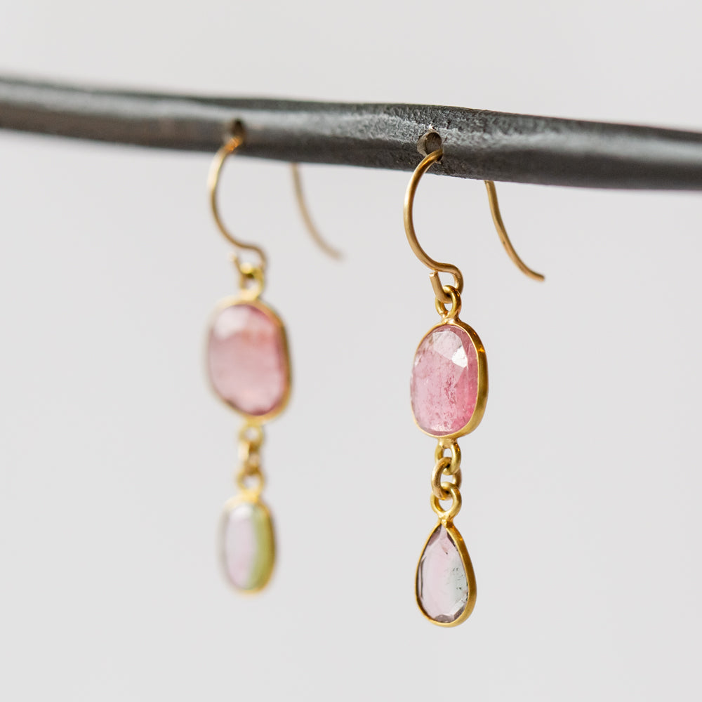 Margaret Solow | Double Watermelon and Pink Tourmaline Drop Earrings