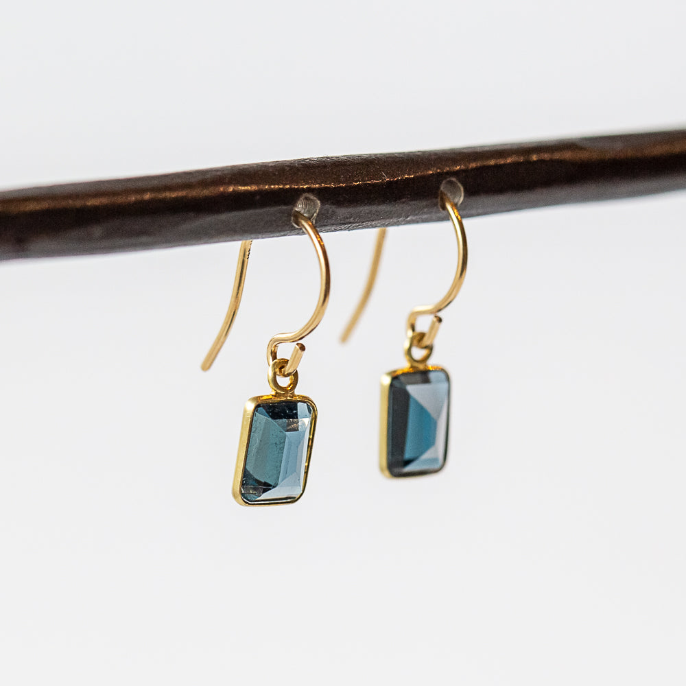 Clean and colorful, these emerald-cut London blue topaz drop earrings are bezel-set in 18k yellow gold for a sleek, polished finish. The deep, stormy blue hue adds instant sophistication to any outfit, whether stacked with other earrings or worn solo as a statement.