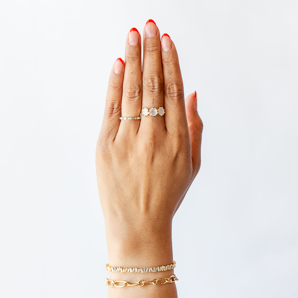 Australian opals are said to spark creativity and emotional balance—making this the perfect piece for anyone manifesting joy, love, and main-character energy. Wear it solo as a radiant statement or layer it into a dreamy ring stack. A crown for your hand, because every day deserves a little celebration.
