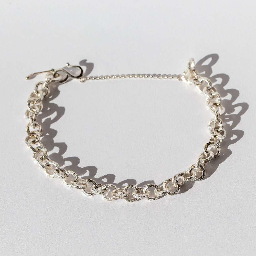 A modern classic with an artisanal twist—this hand-carved sterling silver chain bracelet brings effortless style with a touch of raw, organic beauty. The subtle texture catches the light just right, creating a soft, natural shimmer that feels both refined and relaxed. It’s the kind of bracelet that looks just as good stacked with your favorite pieces as it does worn solo for a minimalist statement. Timeless, versatile, and undeniably cool—this is the everyday chain you didn’t know you needed.