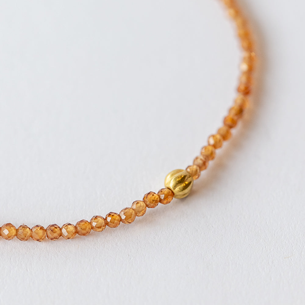 Margaret Solow | Hessonite Garnet Beaded Bracelet with Fluted Gold Bead